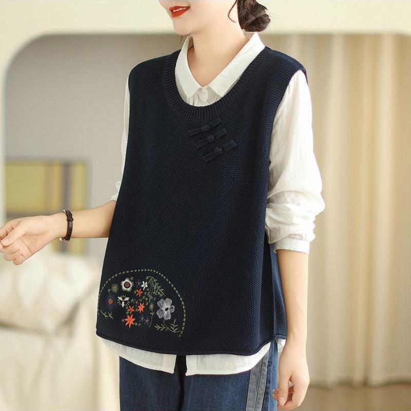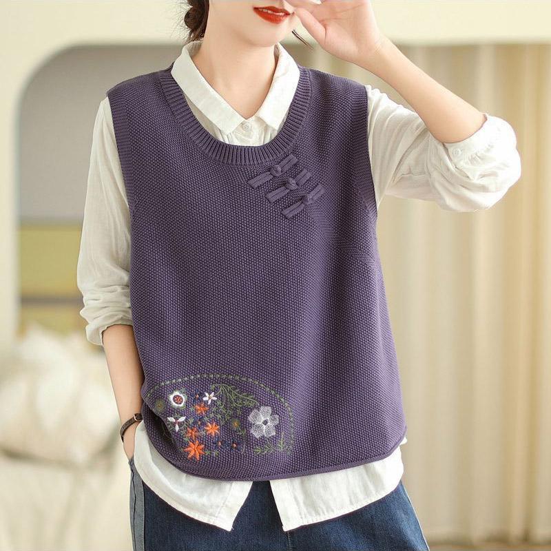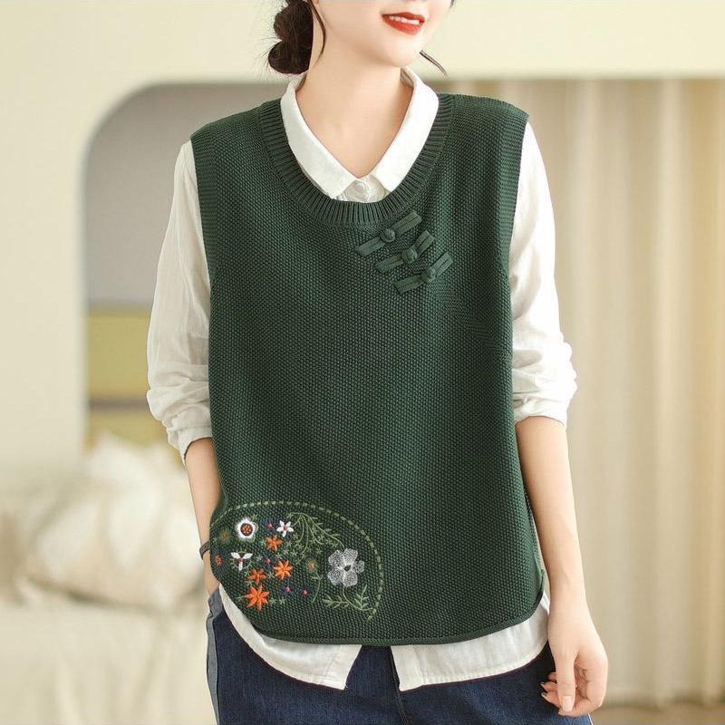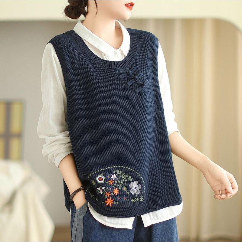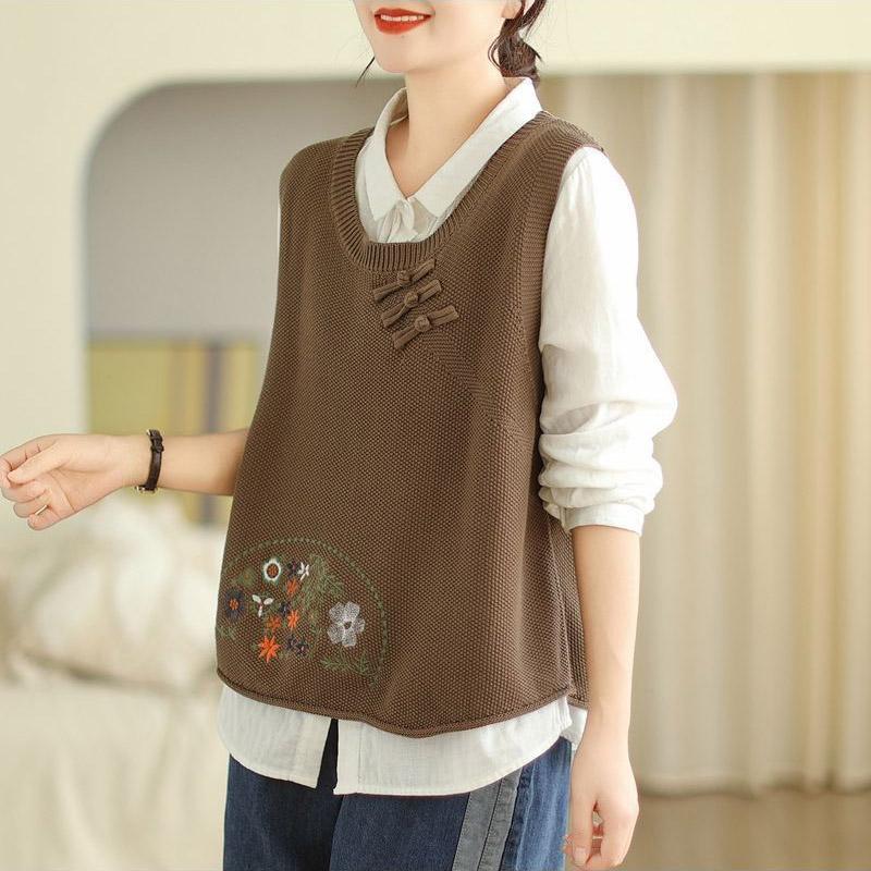 Трикотажный жилет женский свободный безрукавный свитер без рукавов винтажный свободный жилет льняной повседневный жилет с круглым вырезом