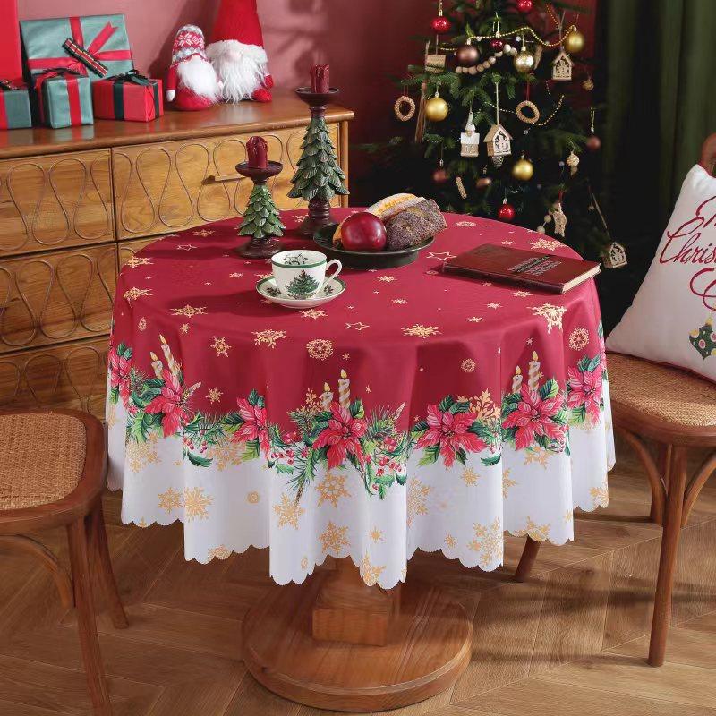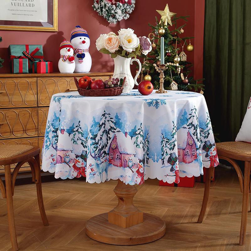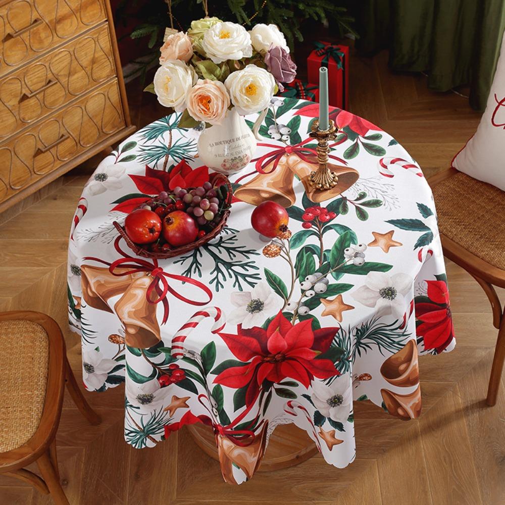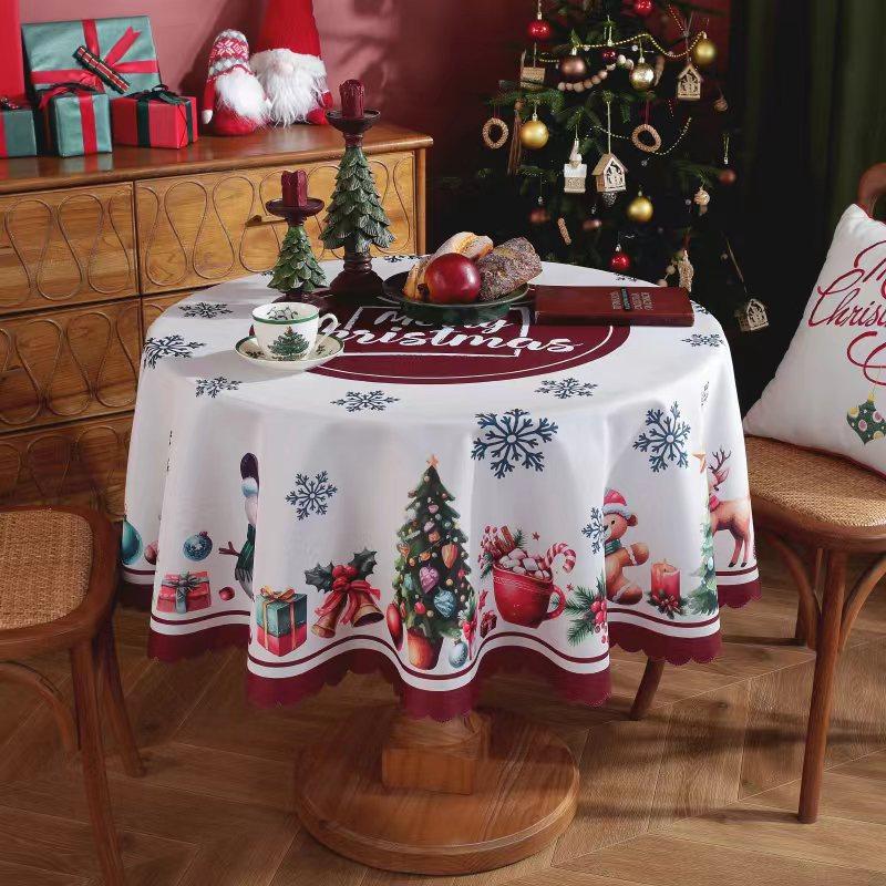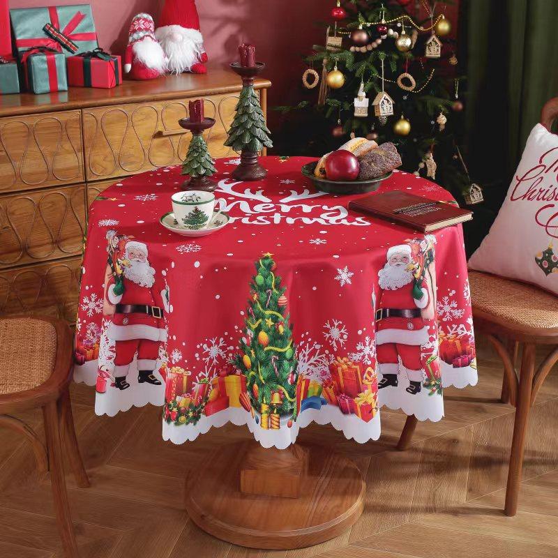 Рождественская елка Санта Красная Круглая Скатерть Водонепроницаемая Праздничные Обеденные Украшения для Дома