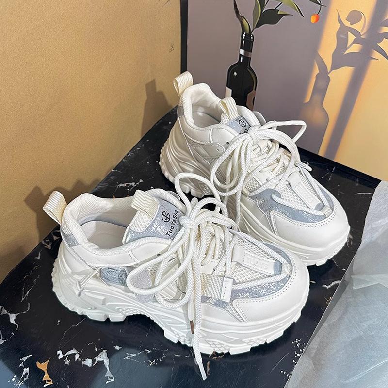 Кожаные туфли для папы, женская обувь, весна-лето, новая сетчатая дышащая толстая подошва, увеличивающая рост, повседневная спортивная обувь