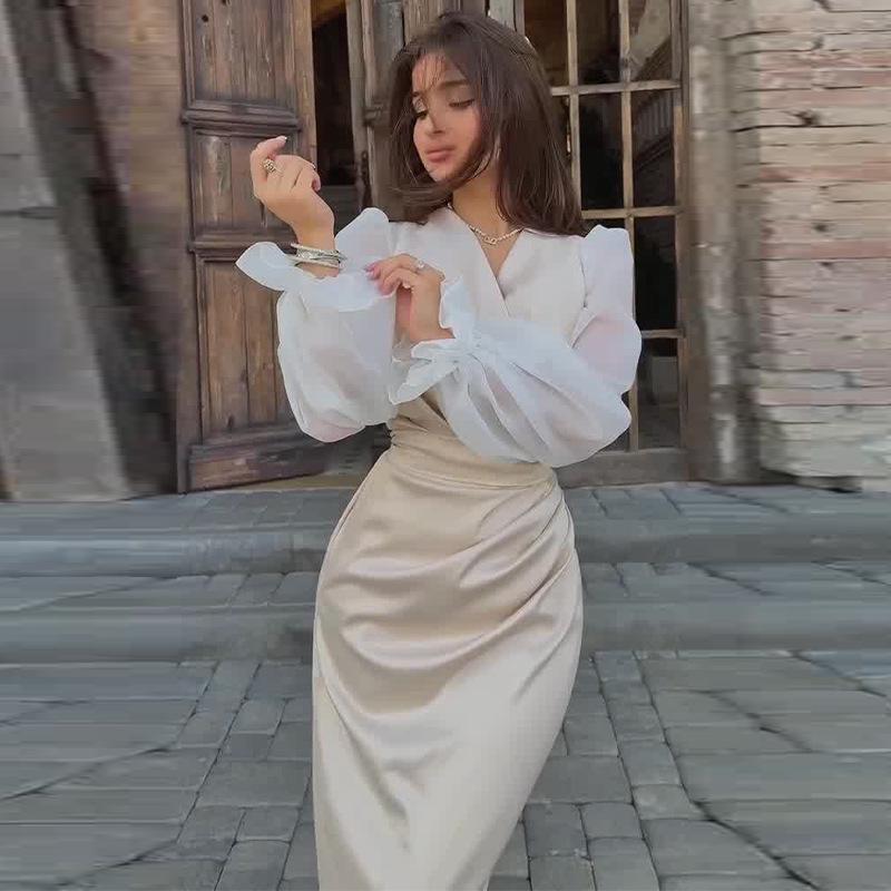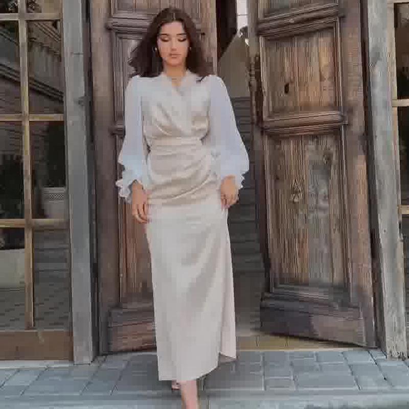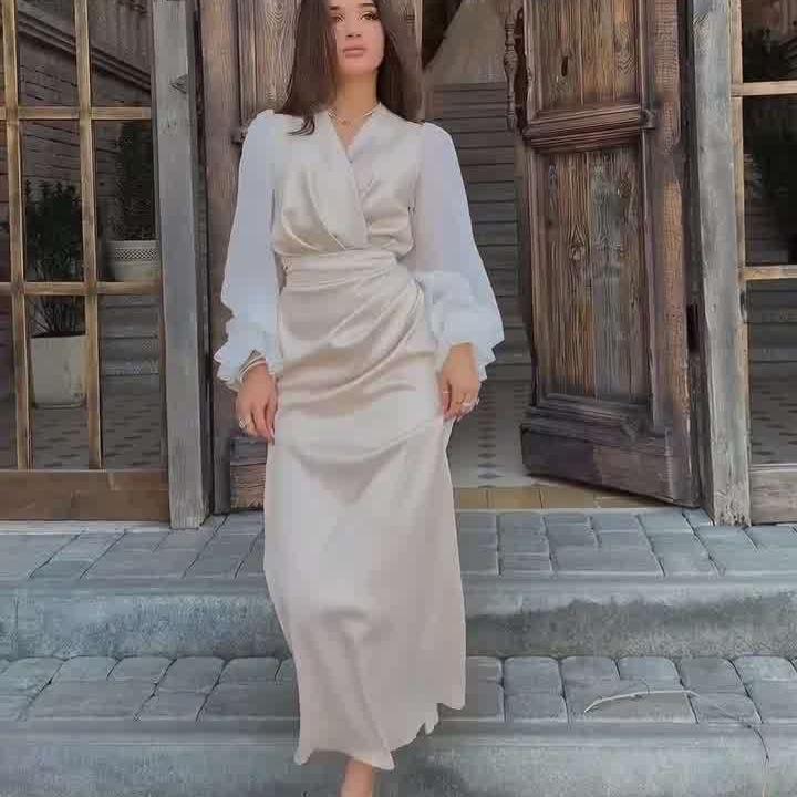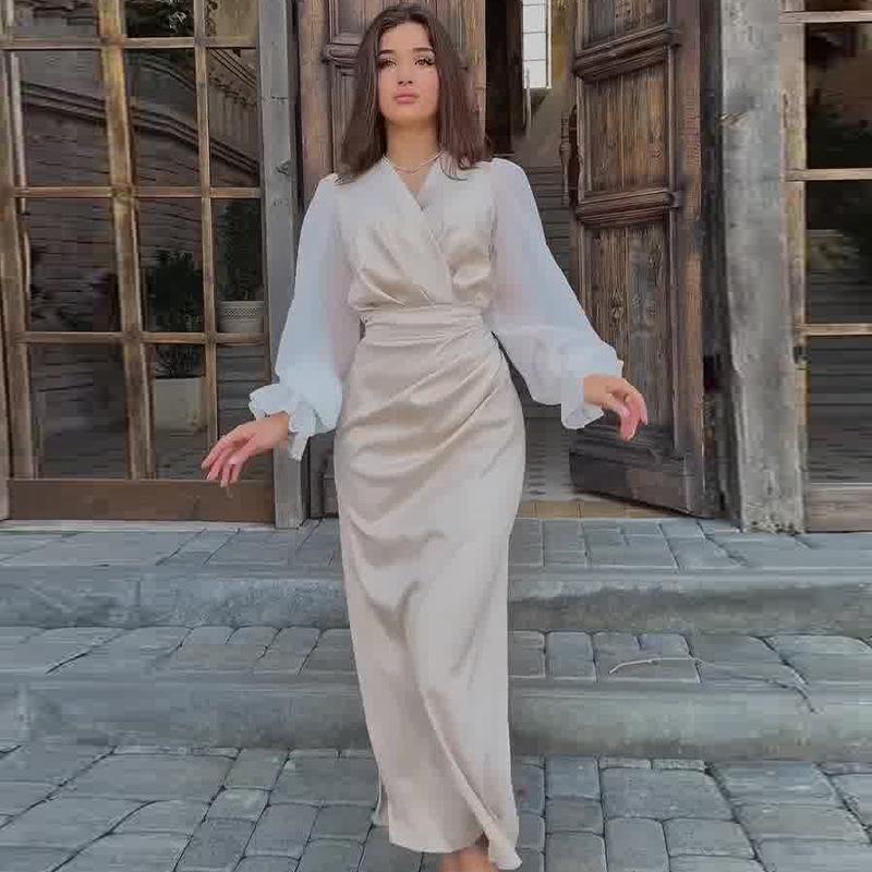 Осень 2024 Женское элегантное платье с плиссировкой и цветными блоками, с высокой талией