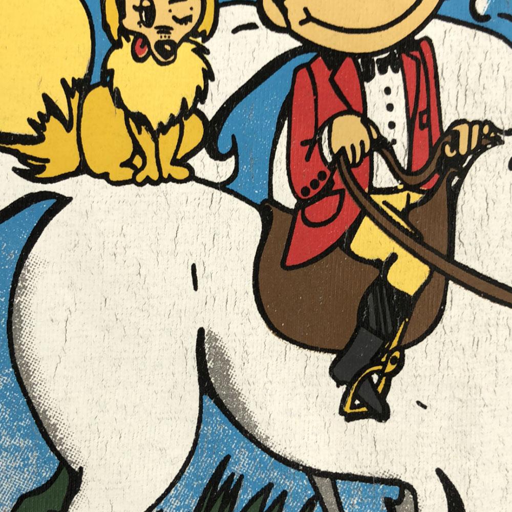 Надпись на внутренней бирке выцвела, что делает материал неясным. На подоле и манжетах есть потертости. На левом рукаве есть небольшая дырка, пожелтение в нижней части переда и на правом рукаве, и небольшое отслоение принта на спине.. Есть некоторый износ, но, пожалуйста, поймите, что это бывший в употреблении товар, перед покупкой.