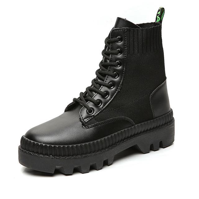 Осенне-зимние кожаные мужские ботинки на платформе, модные ботильоны с носками, мужские черные повседневные высокие берцы, уличная спортивная обувь, новинка — купить товар онлайн с бесплатной доставкой по всему миру!
