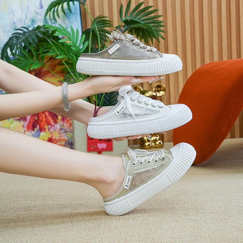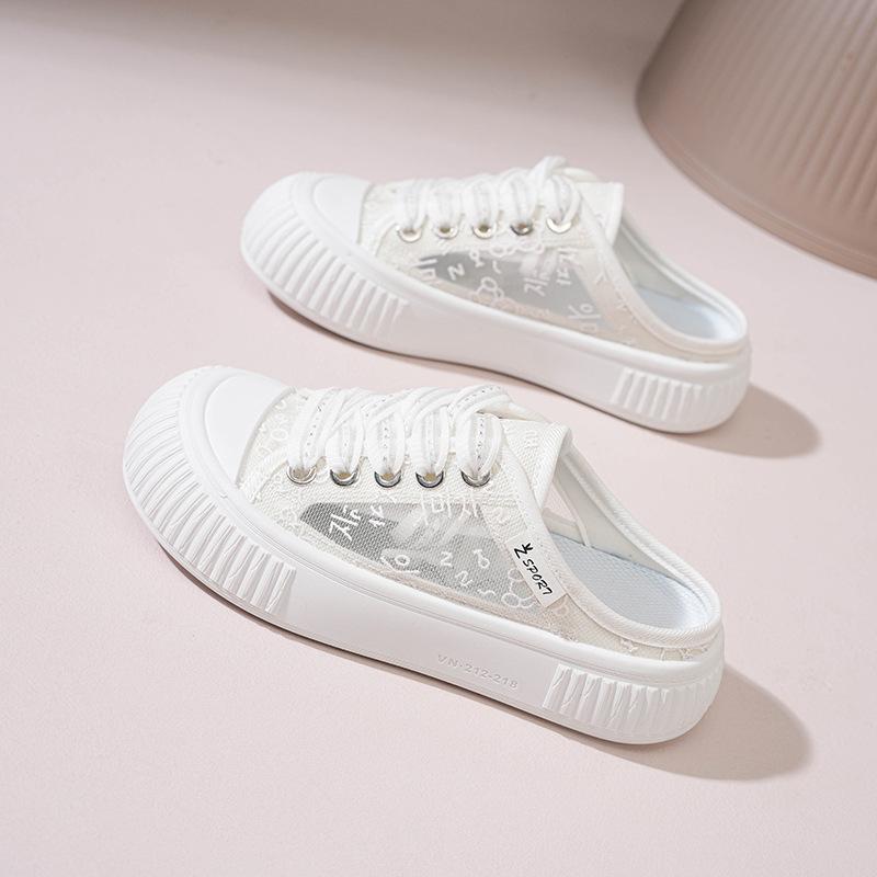 Baotou Half Slippers женские летние новые универсальные ленивые сандалии на толстой подошве сетчатые дышащие белые туфли на плоской подошве