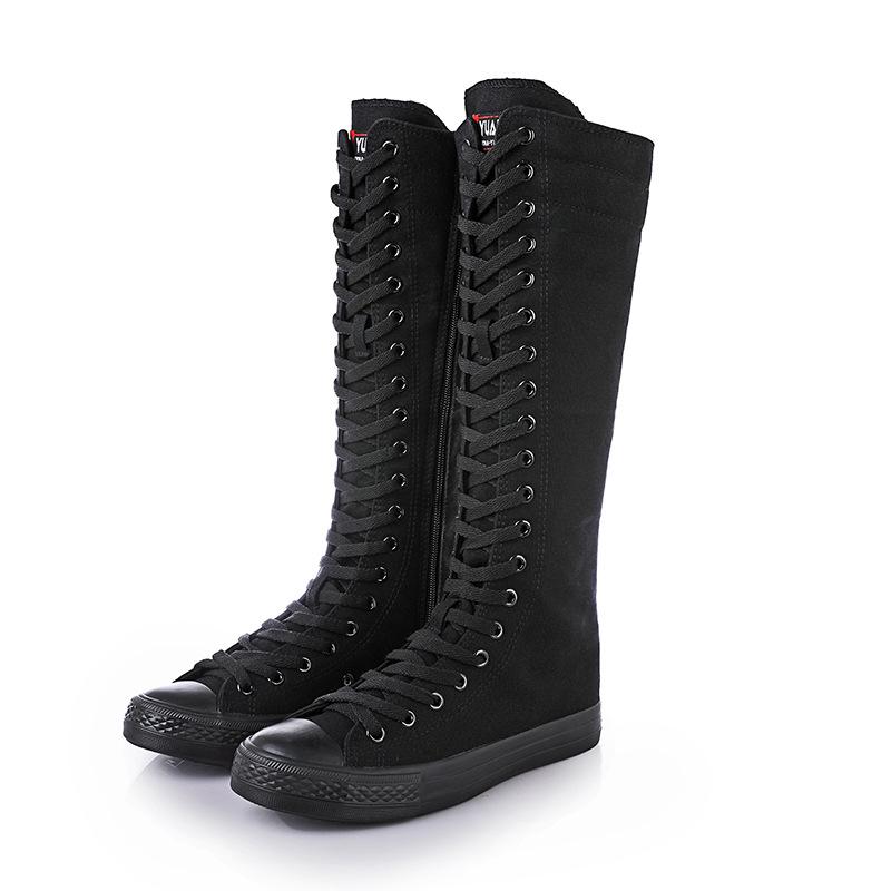 Весенне-осенняя женская обувь. Холщовая повседневная обувь с высоким берцем. Длинные сапоги. Удобные ботинки на плоской подошве на шнуровке и молнии. Кроссовки. — купить товар онлайн с бесплатной доставкой по всему миру!