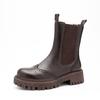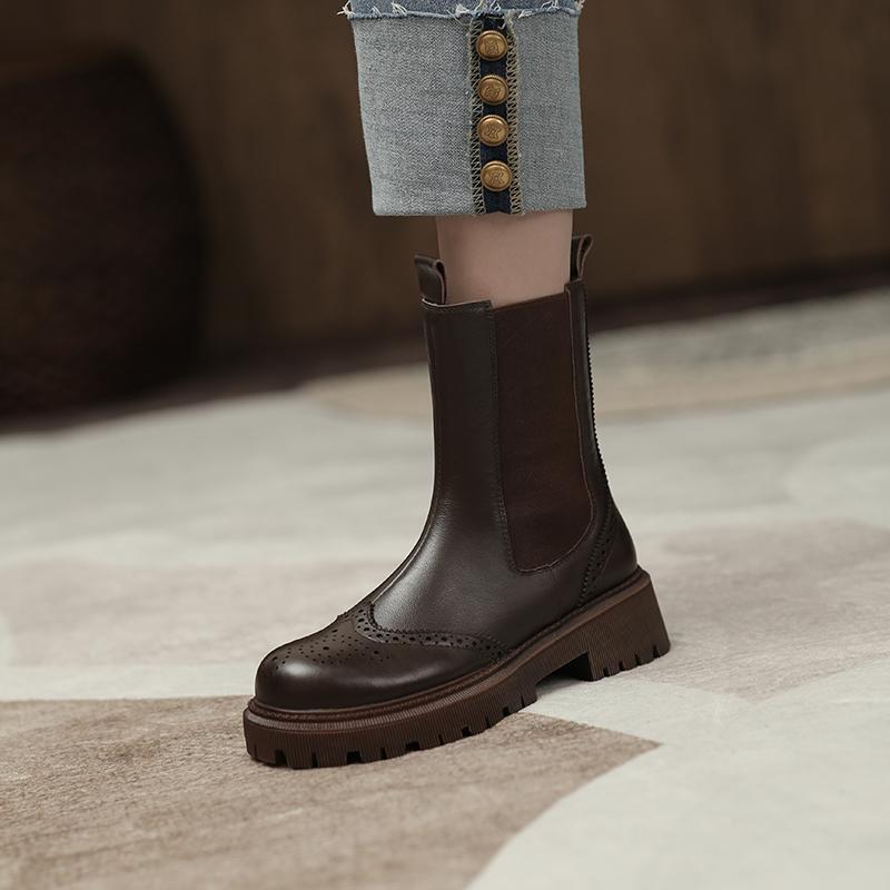 Новые женские ботинки из натуральной кожи, ботинки челси без шнуровки в стиле ретро, ботильоны Brock с круглым носком и резной текстурой, осенне-зимняя женская обувь