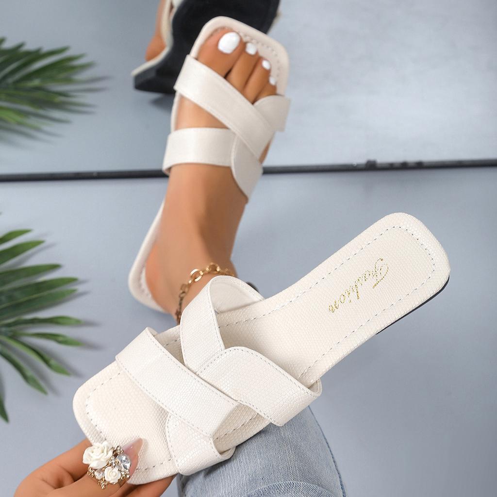 Новые модные тапочки женские летние для улицы квадратный носок универсальные большого размера на одном слове с сандалиями