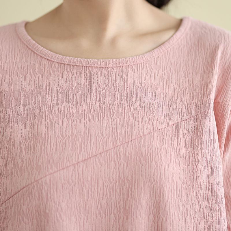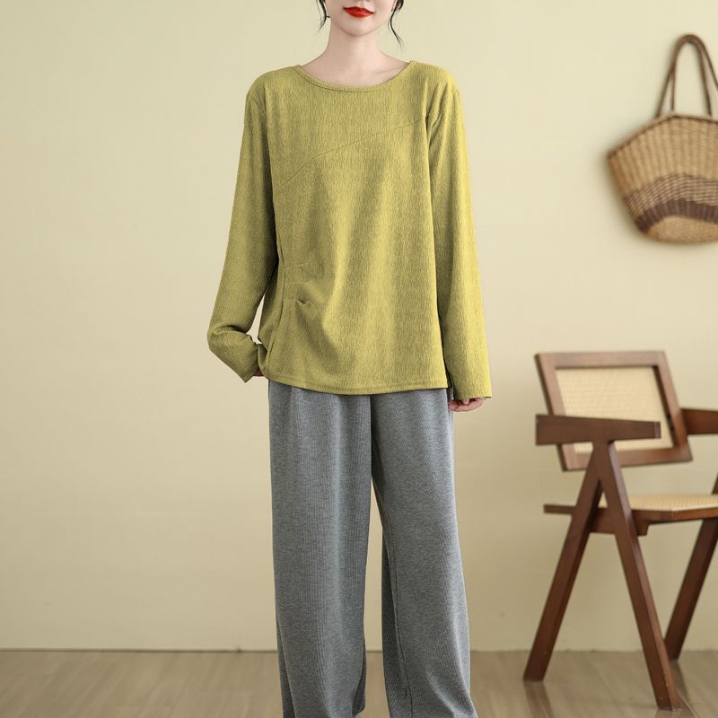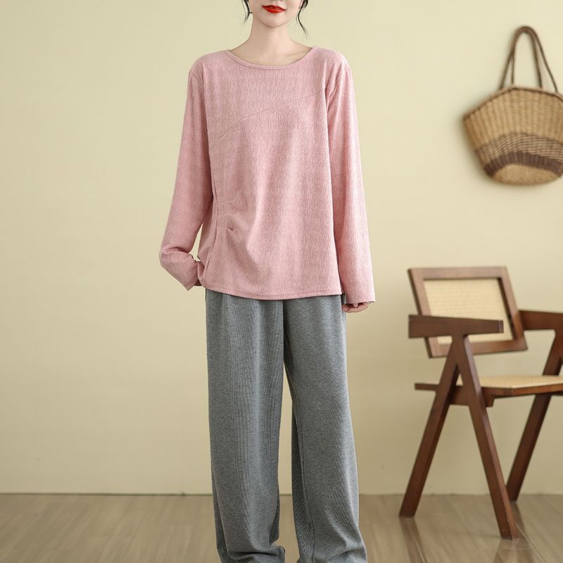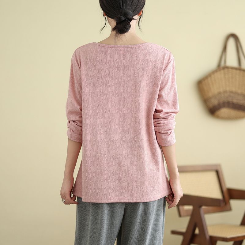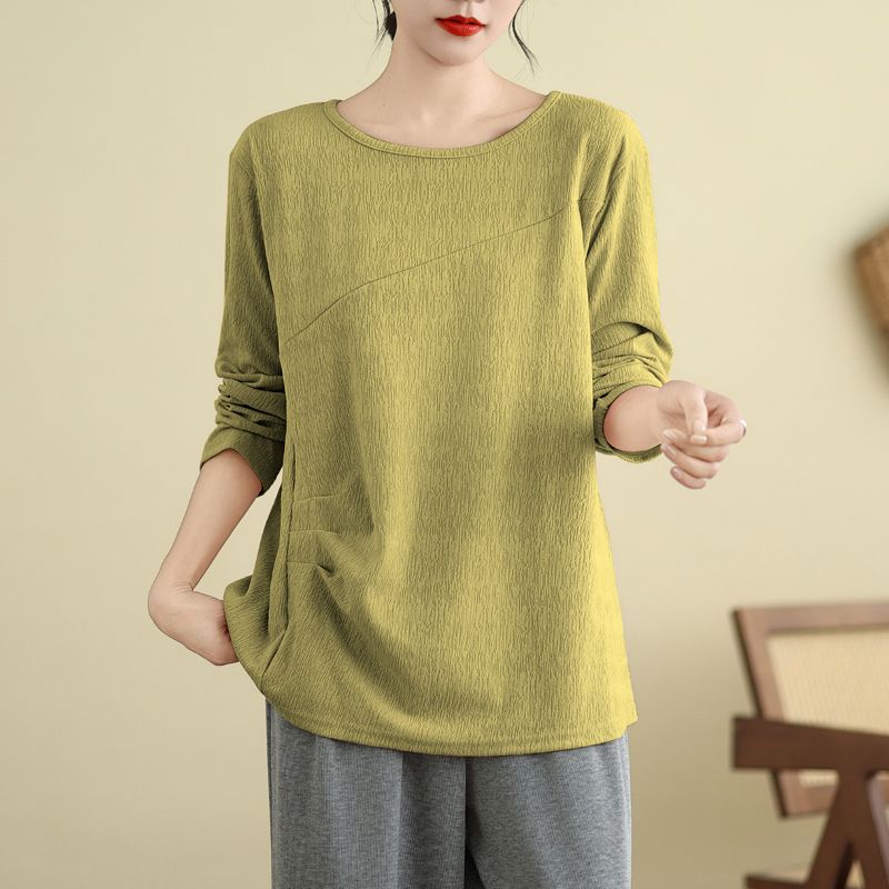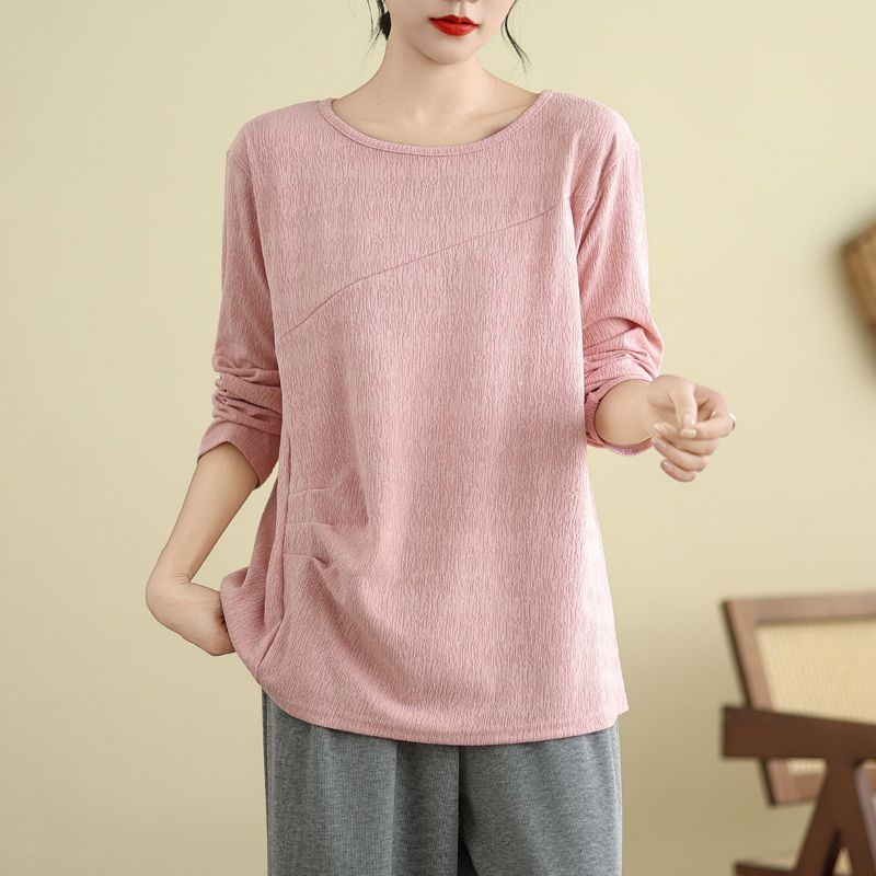 Футболка, топы, женская хлопковая блузка, свободная, удобная, эластичная, с длинным рукавом, однотонная, с круглым вырезом, свободные топы