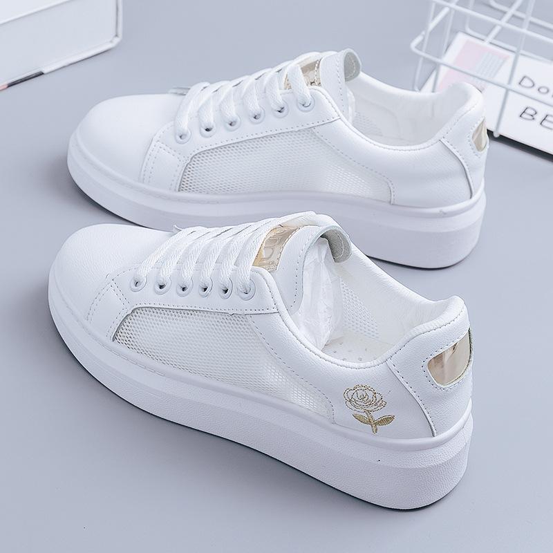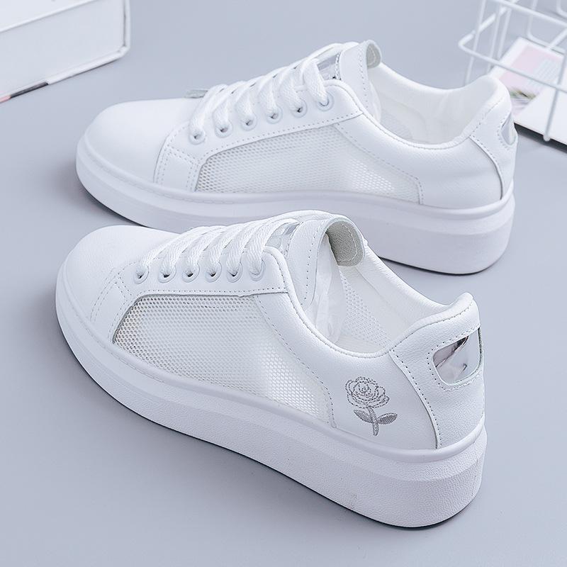 Женская повседневная обувь, трендовые повседневные кроссовки, летние модные белые дышащие кроссовки на шнуровке с цветочной вышивкой, Zapatos Mujer