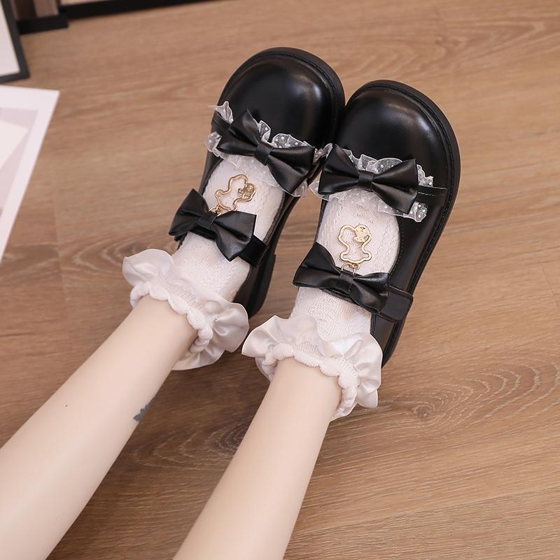 Осенняя обувь, женские милые кавайные туфли на платформе на плоской подошве, готическая обувь Лолиты с бантом, туфли Мэри Джейн, модная кожаная обувь