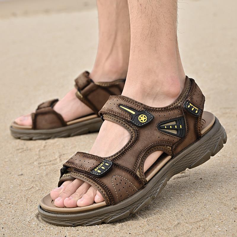 Мужские сандалии, пляжная обувь из натуральной кожи, новые летние спортивные повседневные дышащие нескользящие уличные мужские сандалии с мягкой подошвой