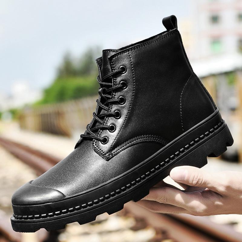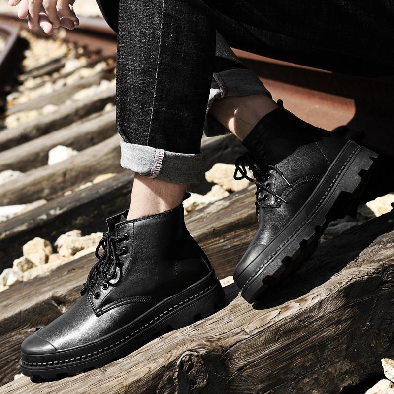 Мужские рабочие ботинки в британском стиле с высоким берцем, мужские кожаные ботинки на платформе средней высоты из натуральной кожи, повседневная мужская обувь в стиле ретро