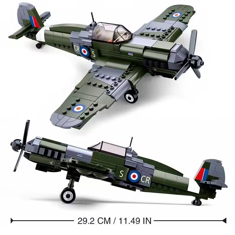 290 шт 0712 WW2 Военный истребитель Спитфайр Модель Строительные блоки Игрушечные кирпичики DIY Развивающая игрушка Подарок для мальчика