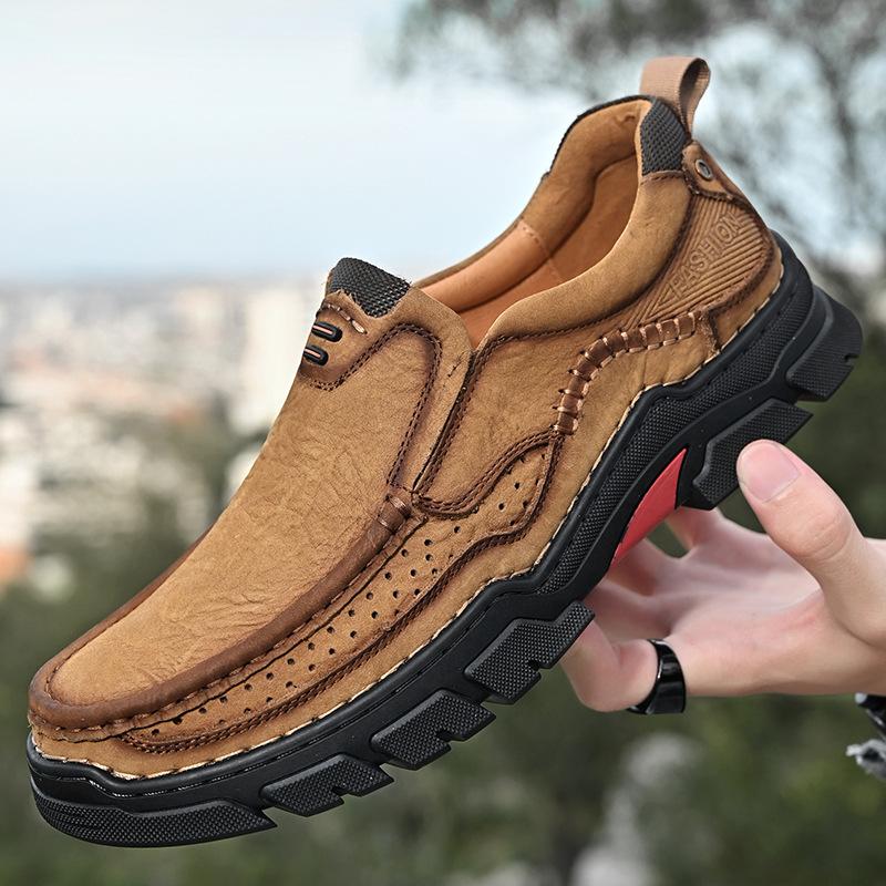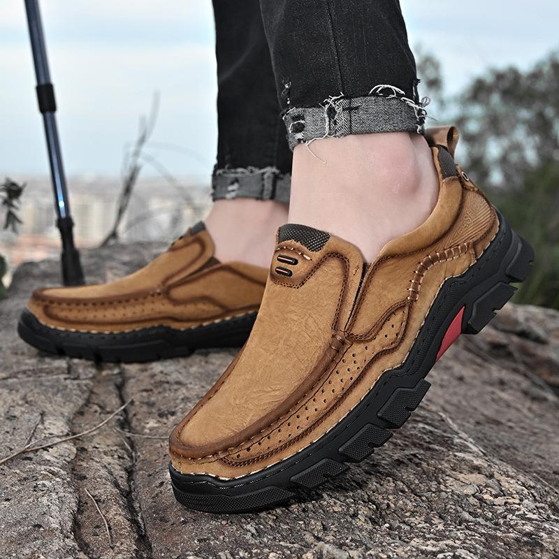 Осенне-зимняя обувь больших размеров для мужчин, мягкая подошва, повседневная обувь из кожи для отдыха на открытом воздухе, нескользящая мужская обувь из кожи в британском стиле