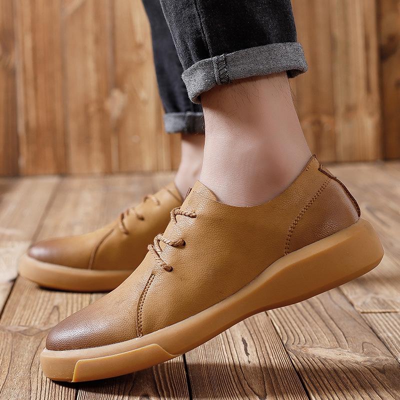 Мужская кожаная обувь больших размеров на весну и осень из коровьей кожи на платформе, износостойкая повседневная обувь для отдыха на открытом воздухе, деловые туфли в британском стиле — купить товар онлайн с бесплатной доставкой по всему миру!