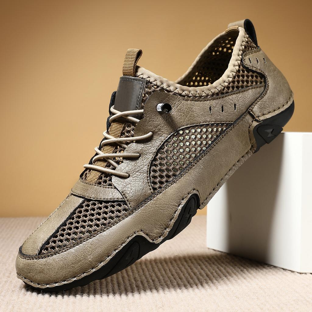 Новые мужские повседневные кроссовки из натуральной кожи больших размеров с дышащей сетчатой поверхностью