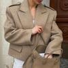 Европейский и американский осенне-зимний шерстяной костюм: Женское пальто кэжуал с широким лацканом класса люкс