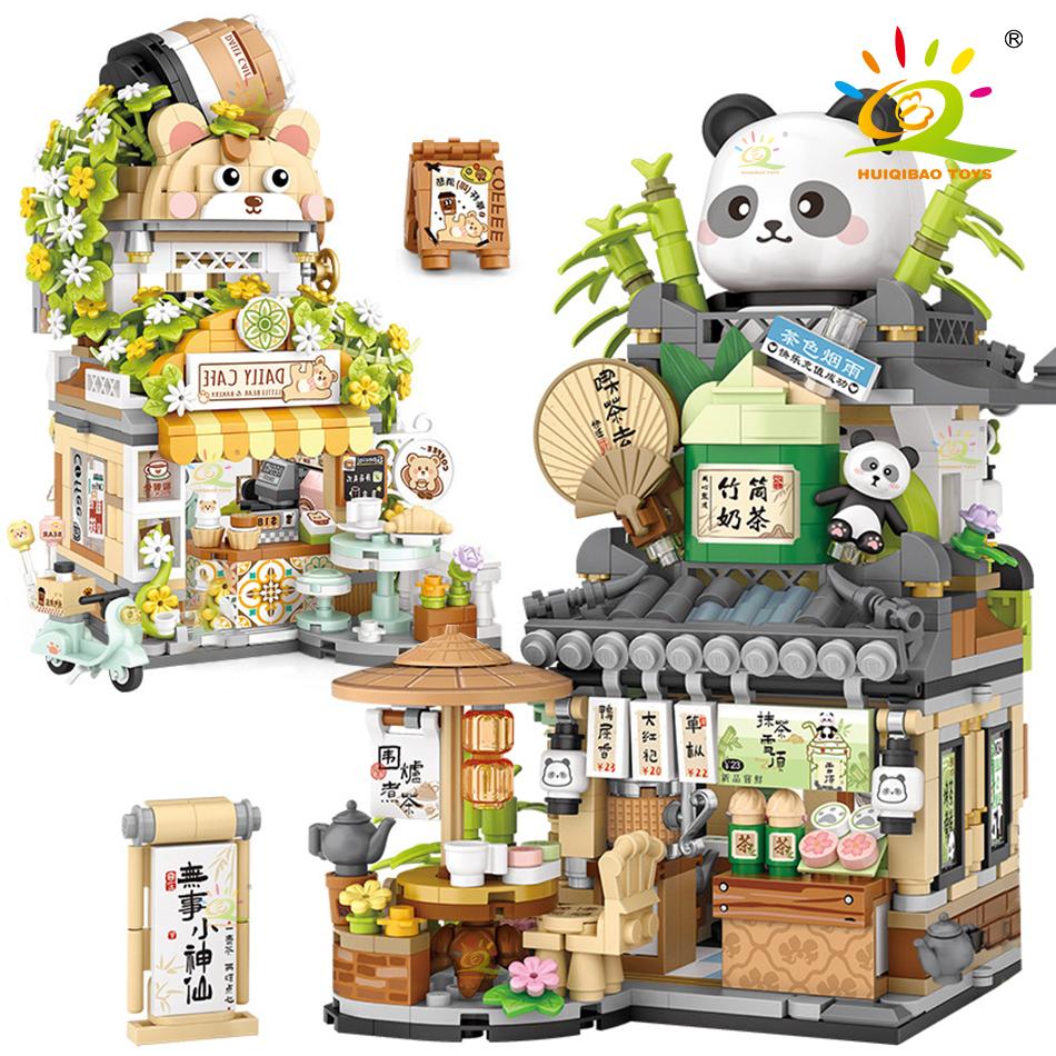 HUIQIBAO City Mini Street View Panda Tea House Модель Строительные блоки DIY Маленький медведь Кофейня Кирпичи Игрушки для детей и взрослых — купить товар онлайн с бесплатной доставкой по всему миру!