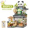 HUIQIBAO City Mini Street View Panda Tea House Модель Строительные блоки DIY Маленький медведь Кофейня Кирпичи Игрушки для детей и взрослых