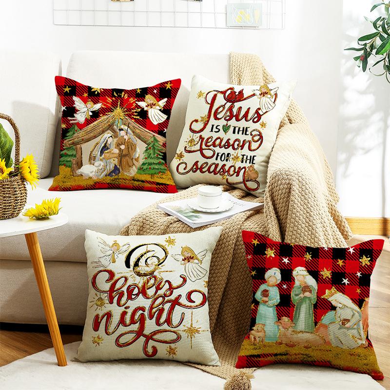 New Winter Linen Printed Pillow Case Christmas Holiday Sofa Decoration Home Pillow