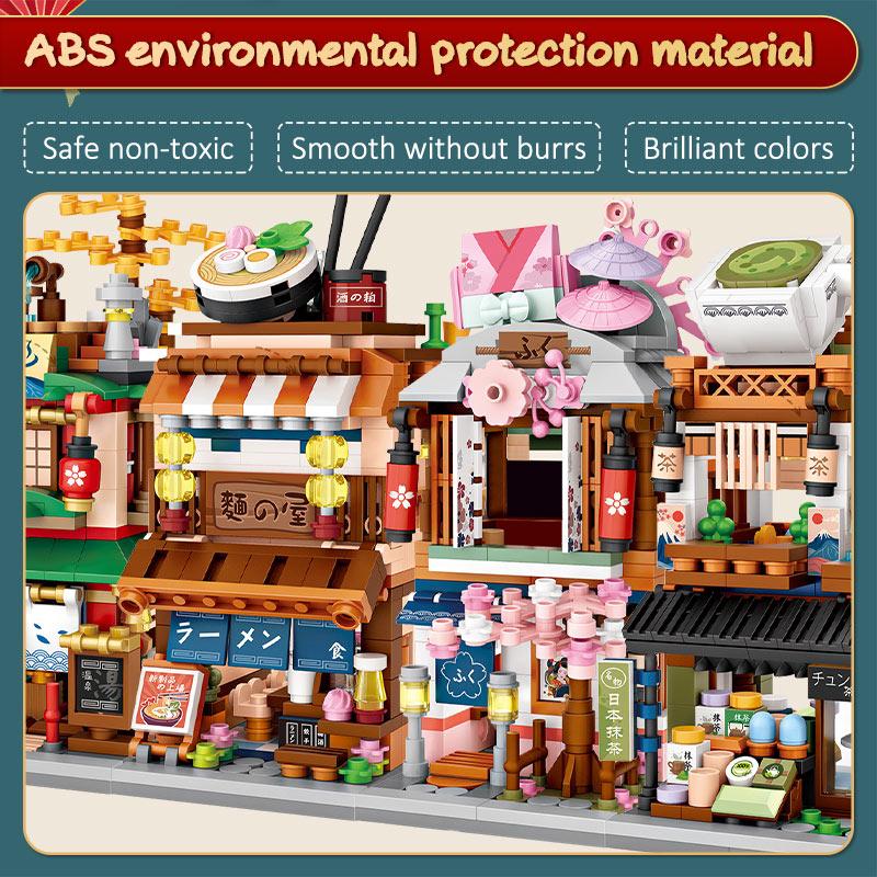 Мини-город с видом на улицу, магазин лапши, строительные блоки для дома 4 в 1, японская архитектура, фигурки друзей, кирпичи, игрушки для детей