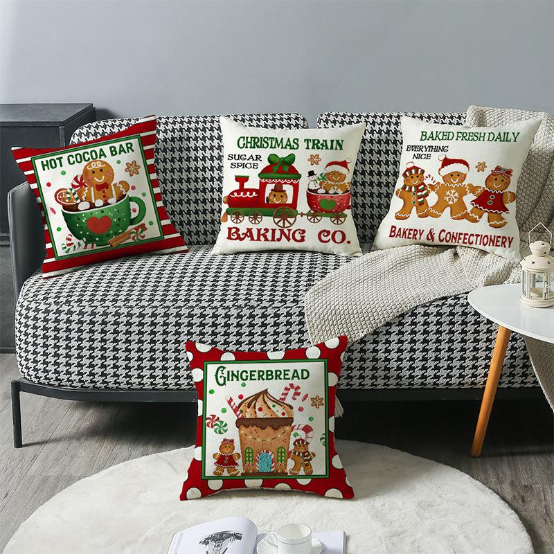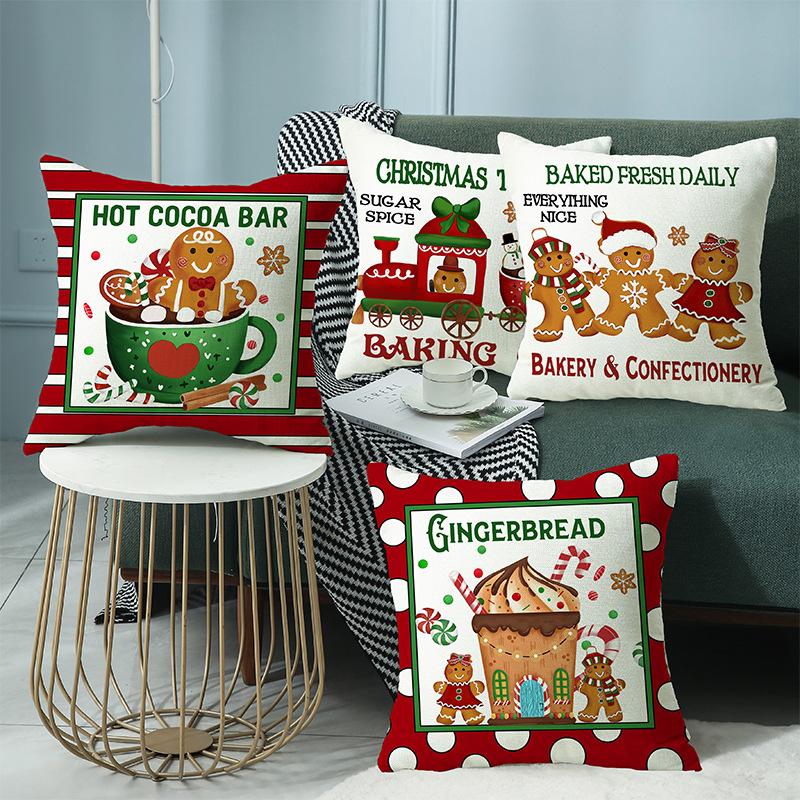 New Style Pillow Case Christmas Gingerbread Man Print Sofa Living Room Pillow Case Home Cushion
