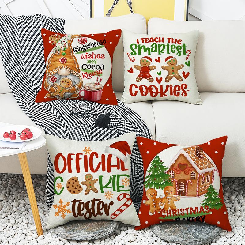 Новый стиль Наволочка Рождественская Буквенное Украшение Пряничный Человек Принт Лен Диван Прикроватная Наволочка