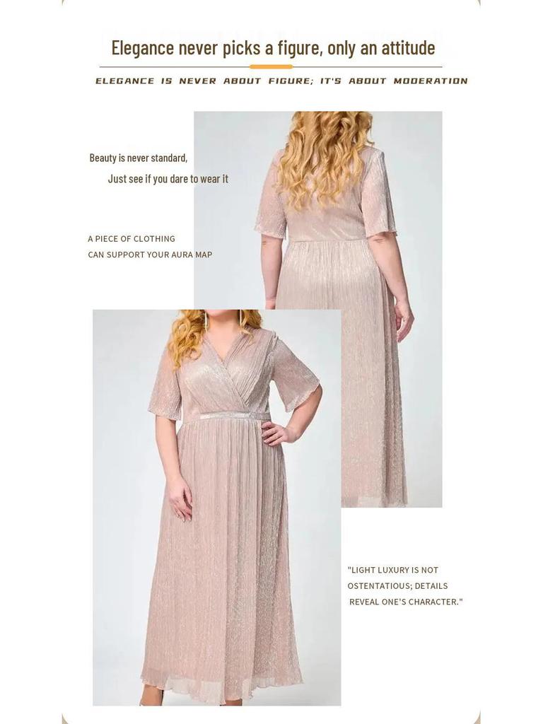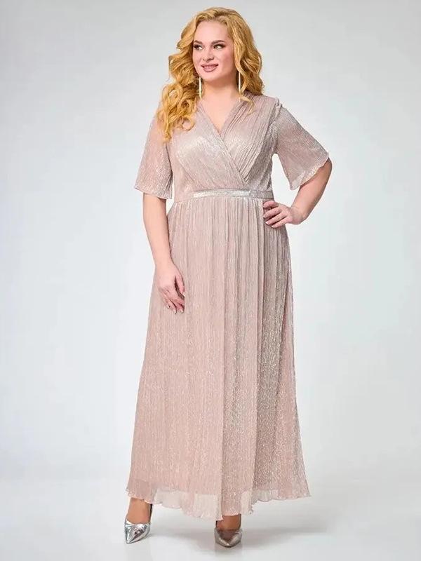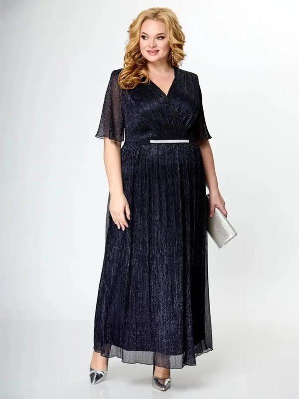 Это модное платье А-силуэта разработано в европейско-американском стиле и обеспечивает лестный, стройнящий талию крой.. Изготовлено из высококачественного полиэстера, имеет стильный сетчатый дизайн, который подчеркивает его элегантность. Идеальное для женщин размера плюс, это однотонное платье сочетает в себе комфорт и изысканность, что делает его отличным выбором для различных случаев.