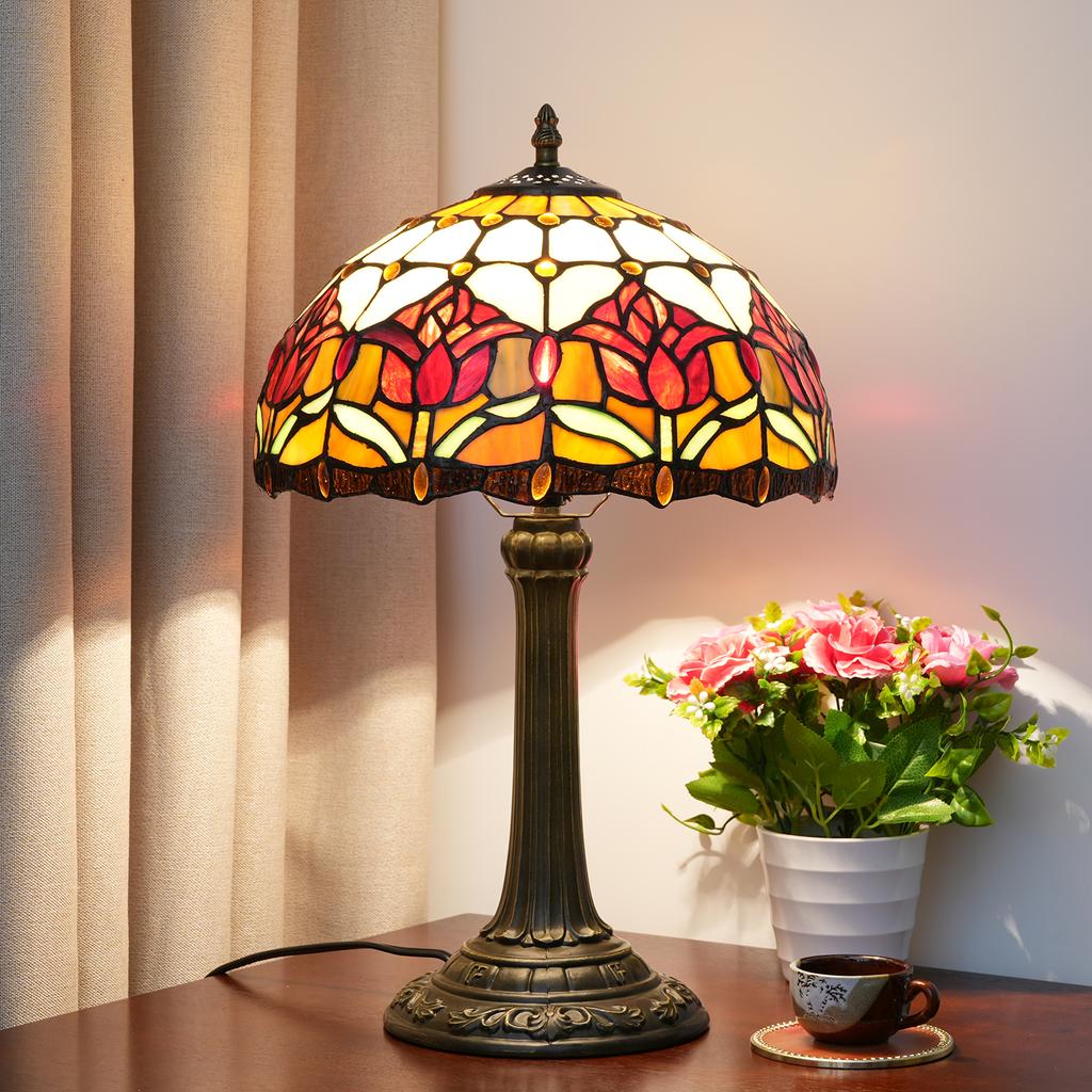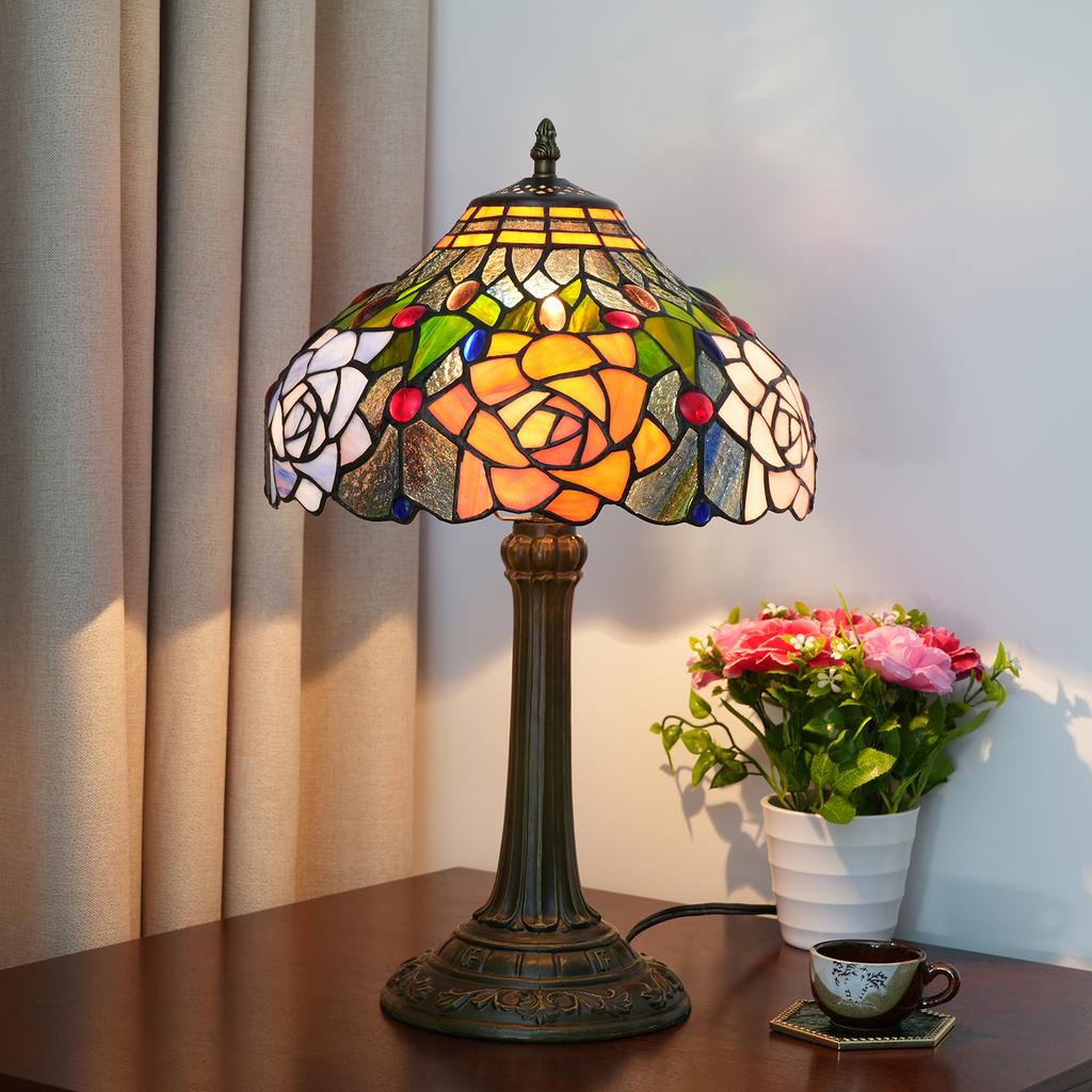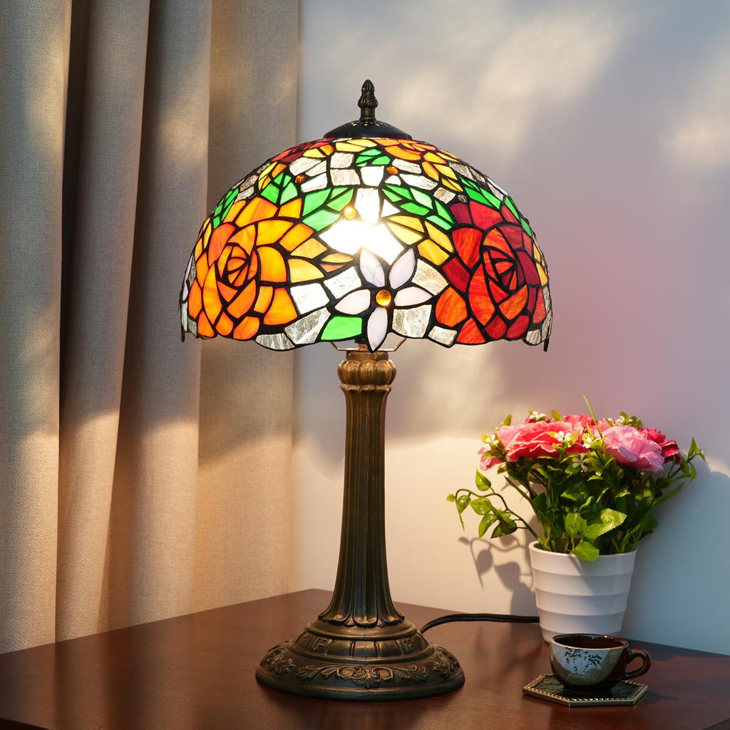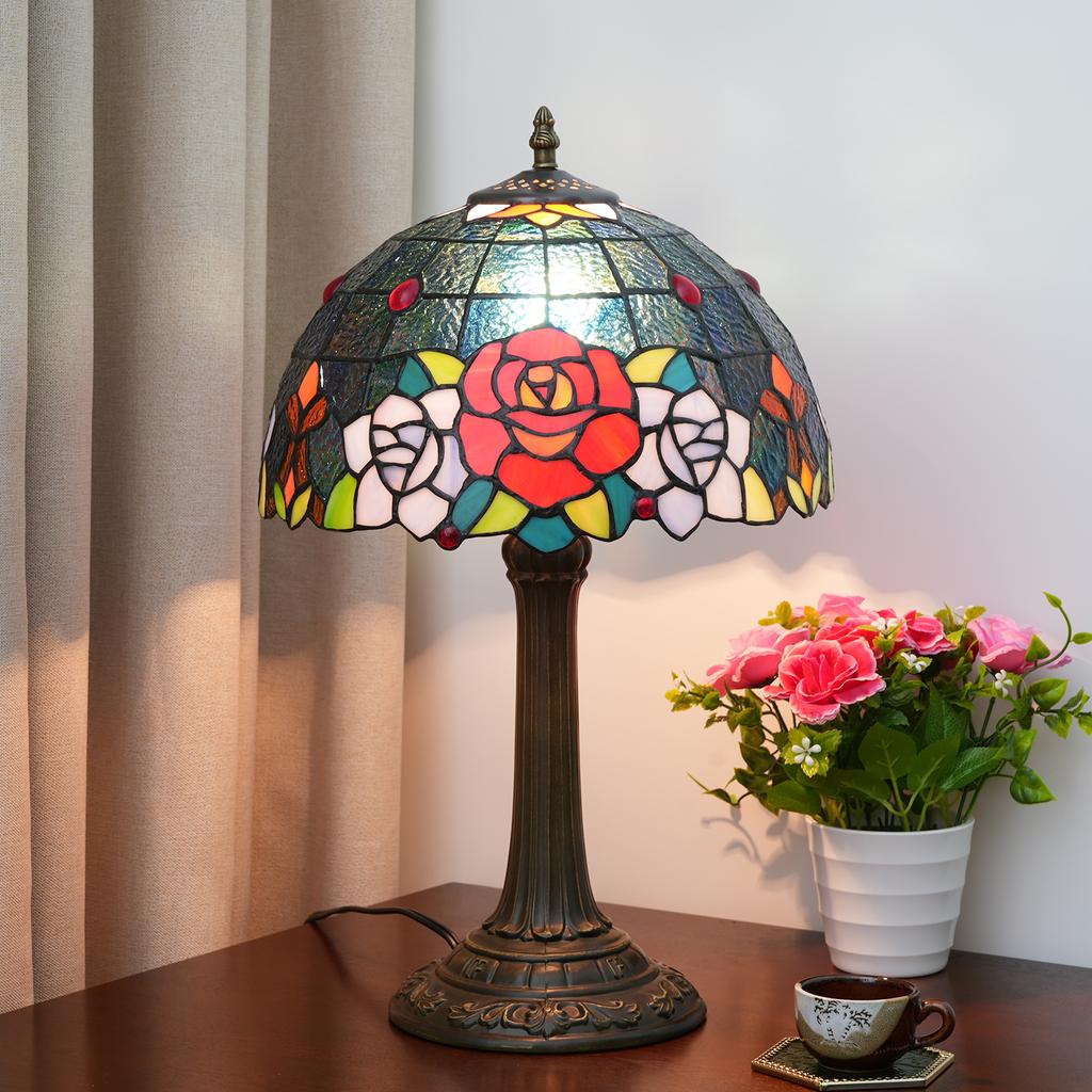 Настольные лампы в традиционном стиле Витражная распускающаяся роза Винтажный настольный светильник Спальня Средиземноморский ресторан Турецкий домашний декор
