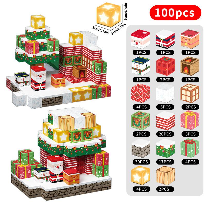 Рождественский набор магнитных строительных блоков, милые магнитные кубики, конструктор, STEM, Монтессори, сенсорные игрушки для детей, подарок на Новый год