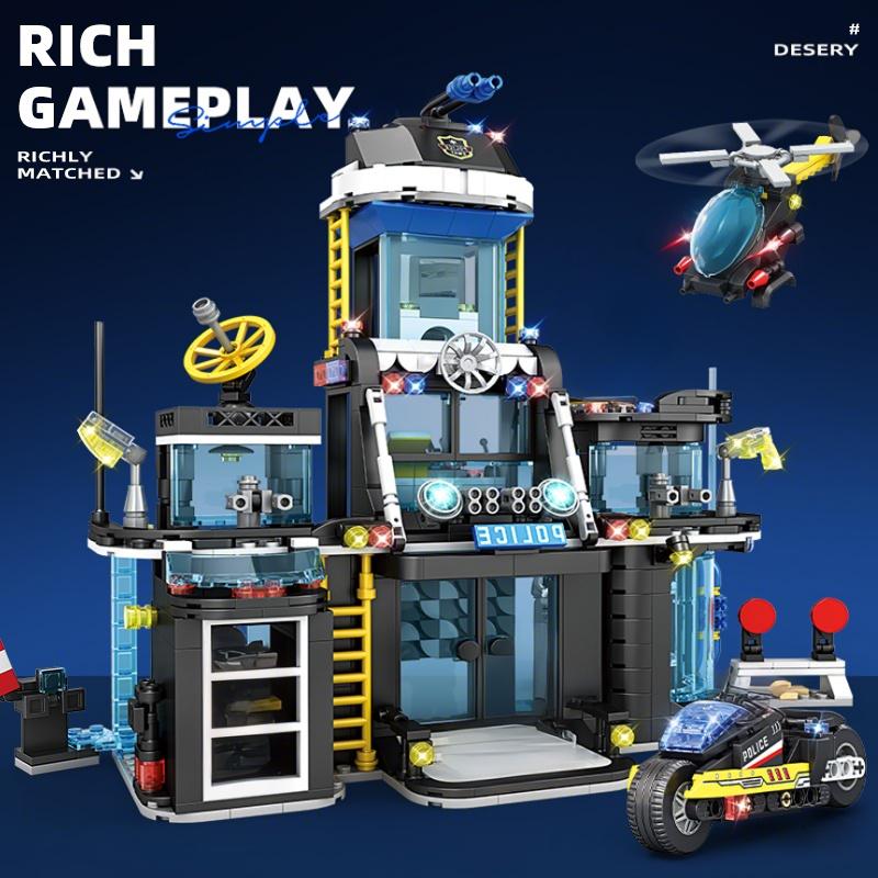 Большой полицейский участок, строительные блоки, серия «Город», конструктор для мальчиков, рождественский подарок на день рождения, детские развивающие игрушки