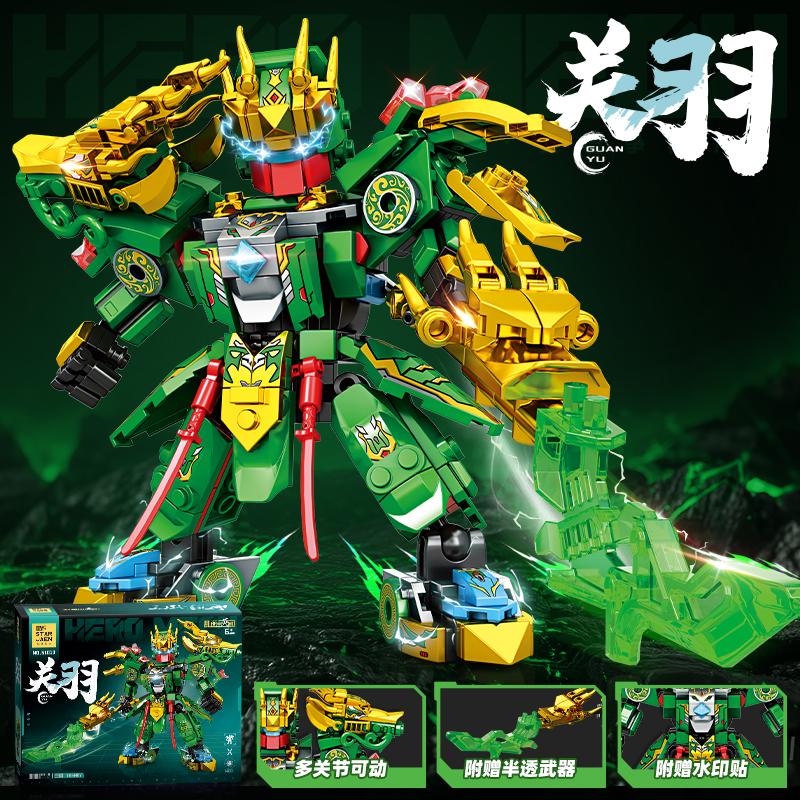 Супер Герой Меха Воин Конструктор Зеленый Робот Гуань Юй Модель Сделай Сам Фигурка Строительная Игрушка для Мальчиков Подарок на День Рождения Рождество Дети