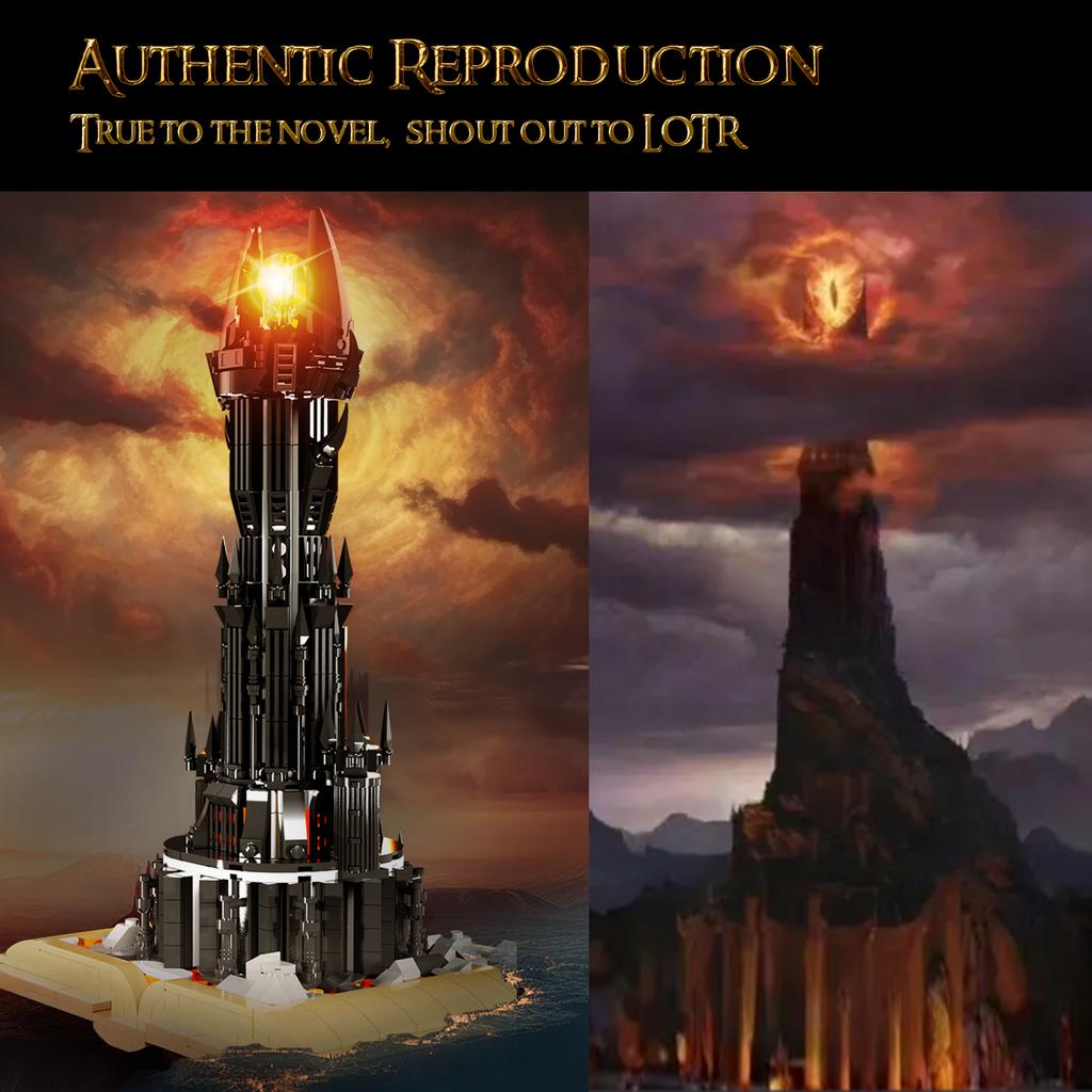 966 шт. Черная башня Магическая книга Конструктор Замок Темной магии Модель Сборные кирпичики Со светом Детские игрушки Праздничные подарки