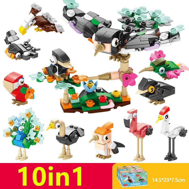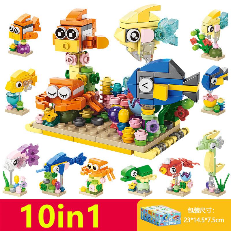 10в1 Милые животные Лиса Коала Собака Насекомое Черепаха Динозавр Страус Золотая рыбка Аквариум Птица Набор строительных блоков Модель Игрушка Дети