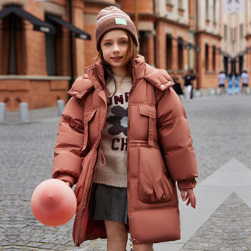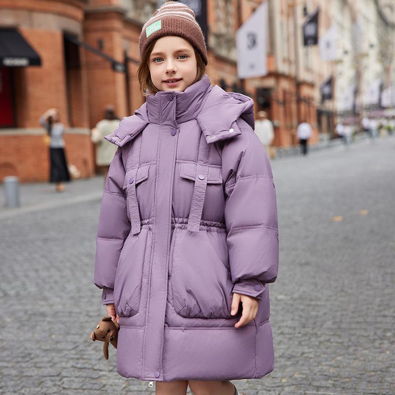 Стильное пальто для девочек средней длины, толстое зимнее пуховое пальто