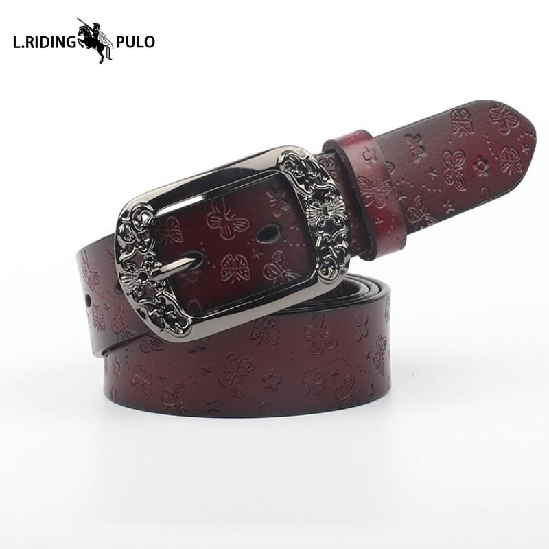 Женские ремни Ретро Универсальные Рельефные Бабочки Натуральная Кожа Ремни Широкие Коровья Кожа Женские Ремни