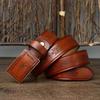 Ремень мужской винтажный с лазерным резным узором, модный ремень ручной работы с гладкой пряжкой из натуральной кожи, джинсовый ремень из натуральной яловой кожи
