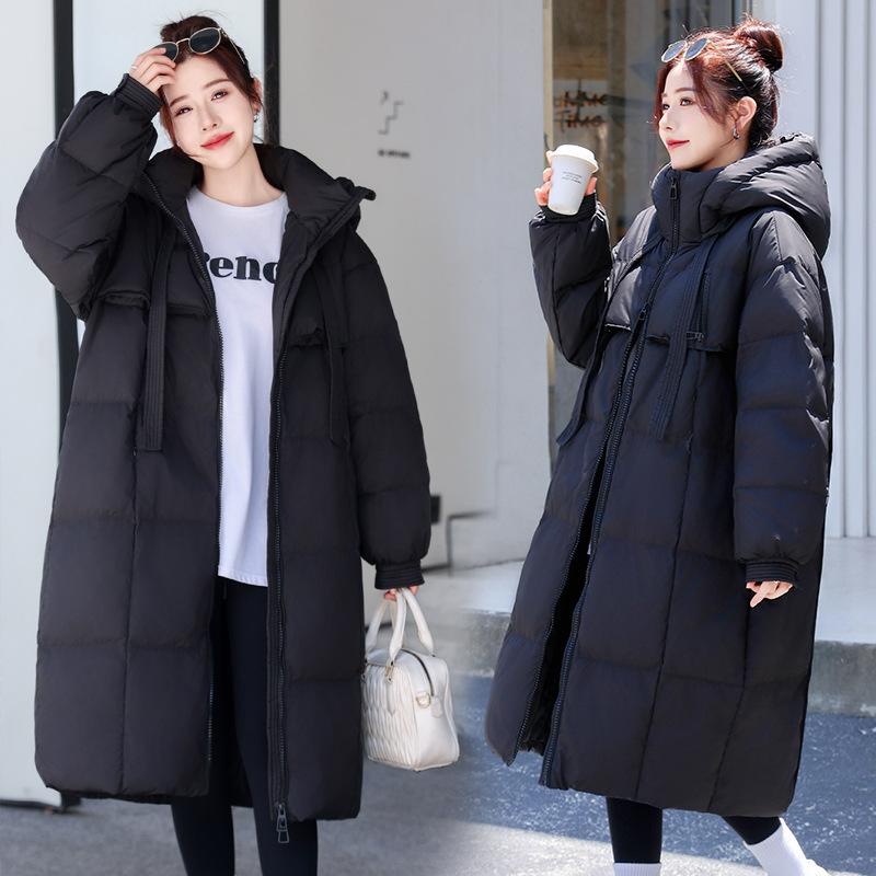 Зимнее Удобное Толстое Хлопковое Пальто для Женщин Длинное До Колена Свободное Пальто