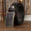 Винтажный ремень ручной работы с лазерной гравировкой узора, пряжка-пластина, мужской, из натуральной кожи, чистая коровья кожа, ремень с гладкой пряжкой