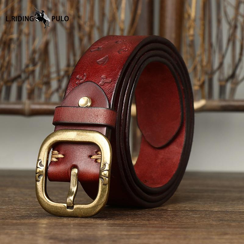 Персонализированный ремень в корейском стиле с машинным тиснением, из кожи растительного дубления, мужской, из натуральной воловьей кожи, с пряжкой-булавкой