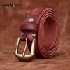 Утолщенный ремень из натуральной кожи, верхний слой коровьей кожи, мужской, медная пряжка, необработанный край, меховая подкладка, ретро-стиль, вымытый