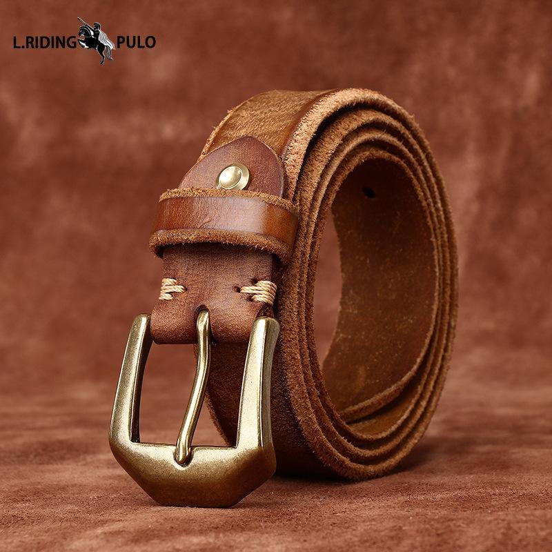 Утолщенный ремень из натуральной кожи, верхний слой коровьей кожи, мужской, медная пряжка, необработанный край, меховая подкладка, ретро-стиль, вымытый — купить товар онлайн с бесплатной доставкой по всему миру!