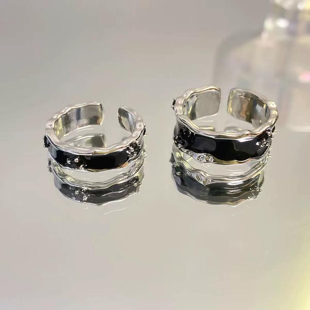Панк Harajuku Goth Thorns черный, серебристый цвет нерегулярное открытое кольцо с сердечком и крестом для женщин и мужчин, винтажные 90-е годы Y2K, ювелирные изделия в стиле гранж