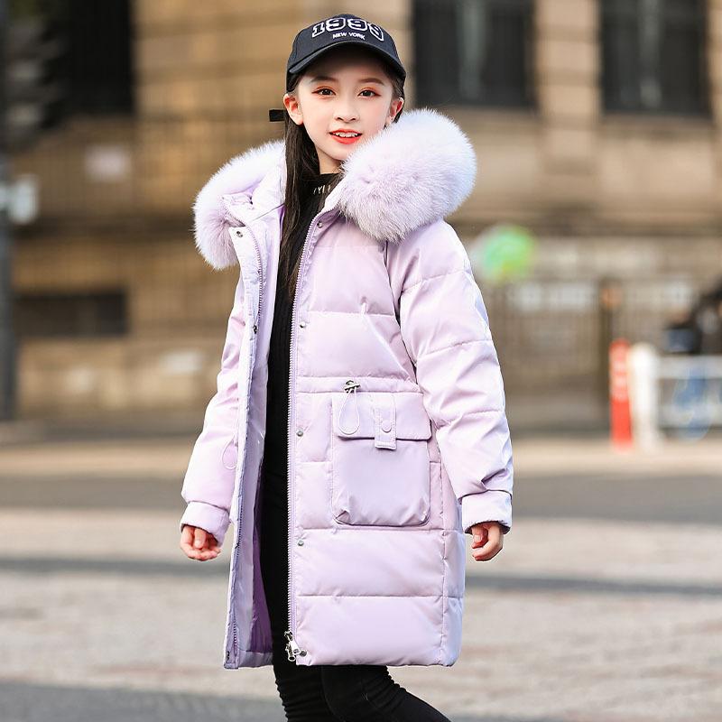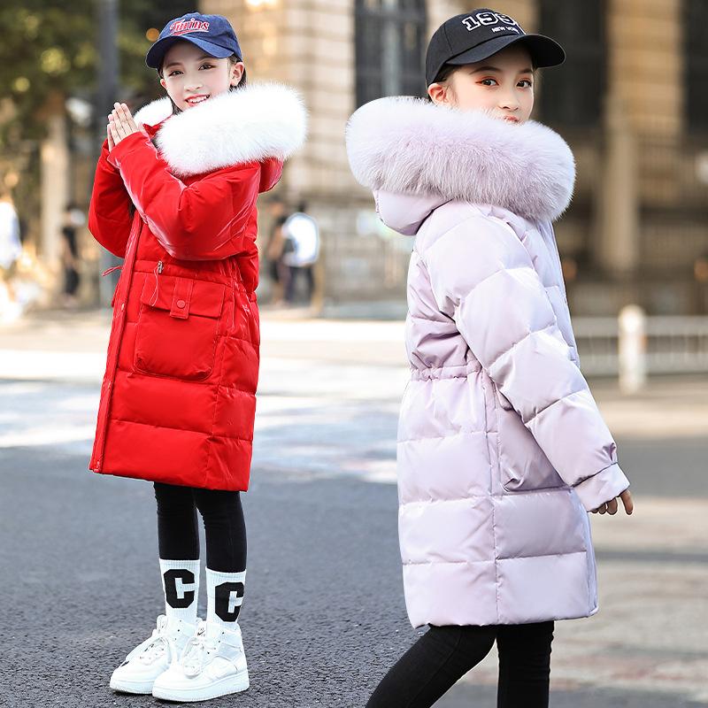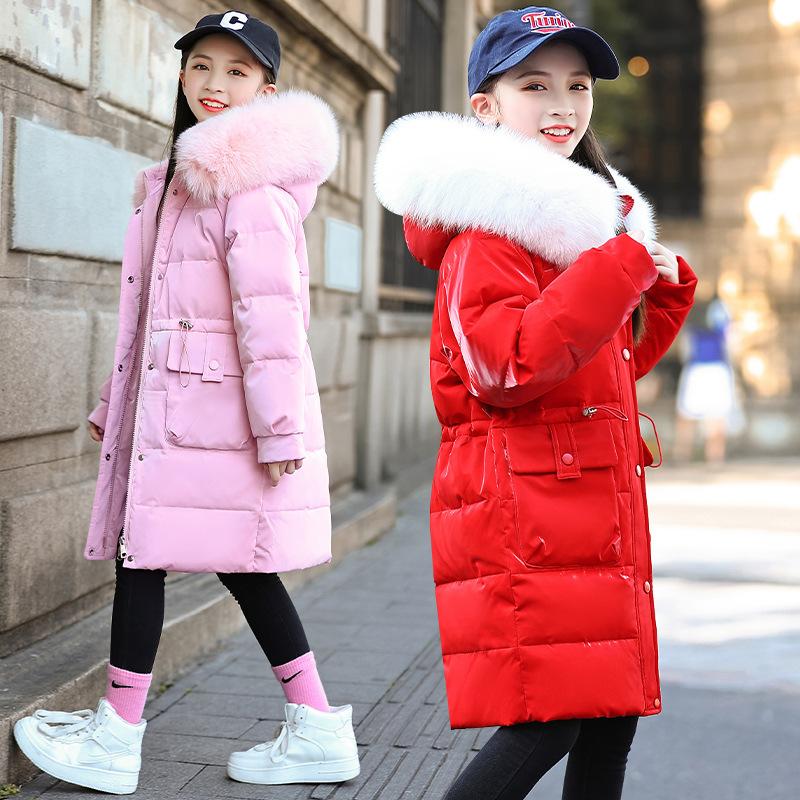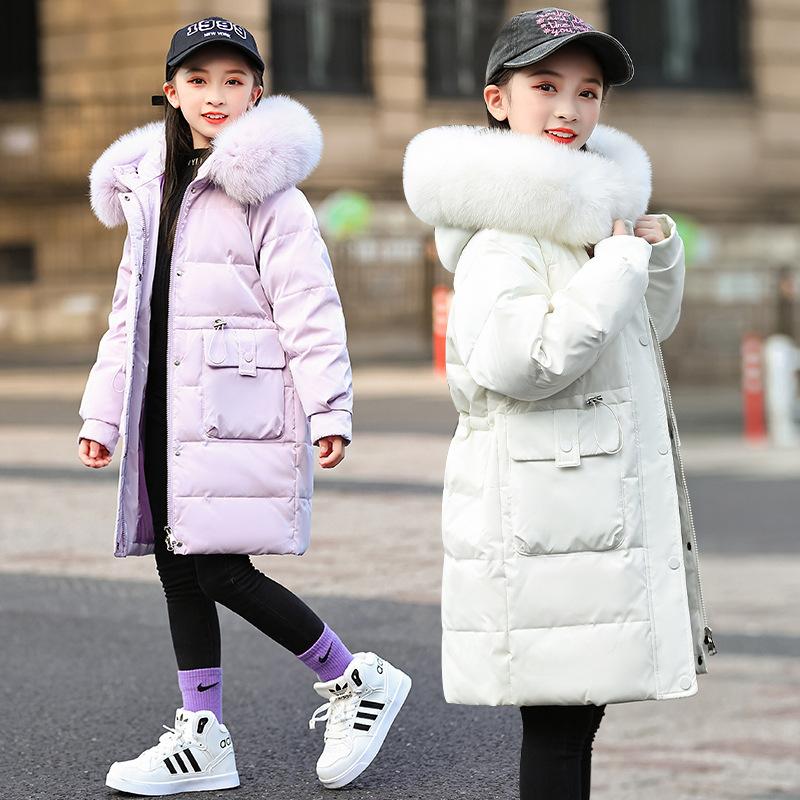 Детская пуховая куртка для девочек средней длины в корейском стиле, стильное зимнее утепленное пальто для детей среднего и большого размера