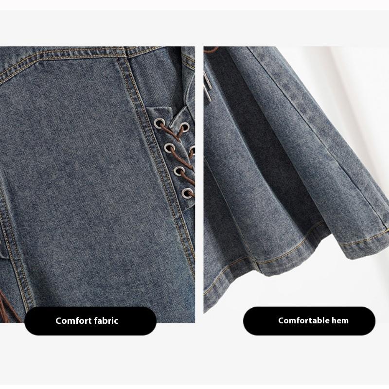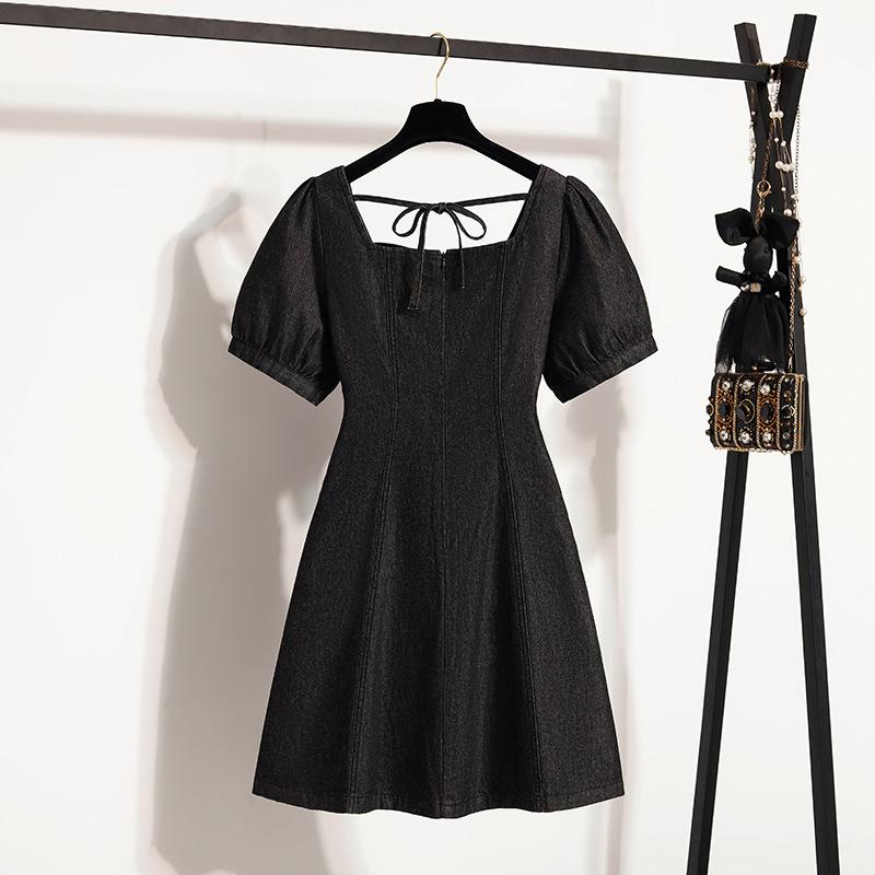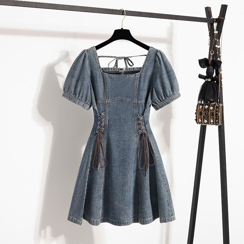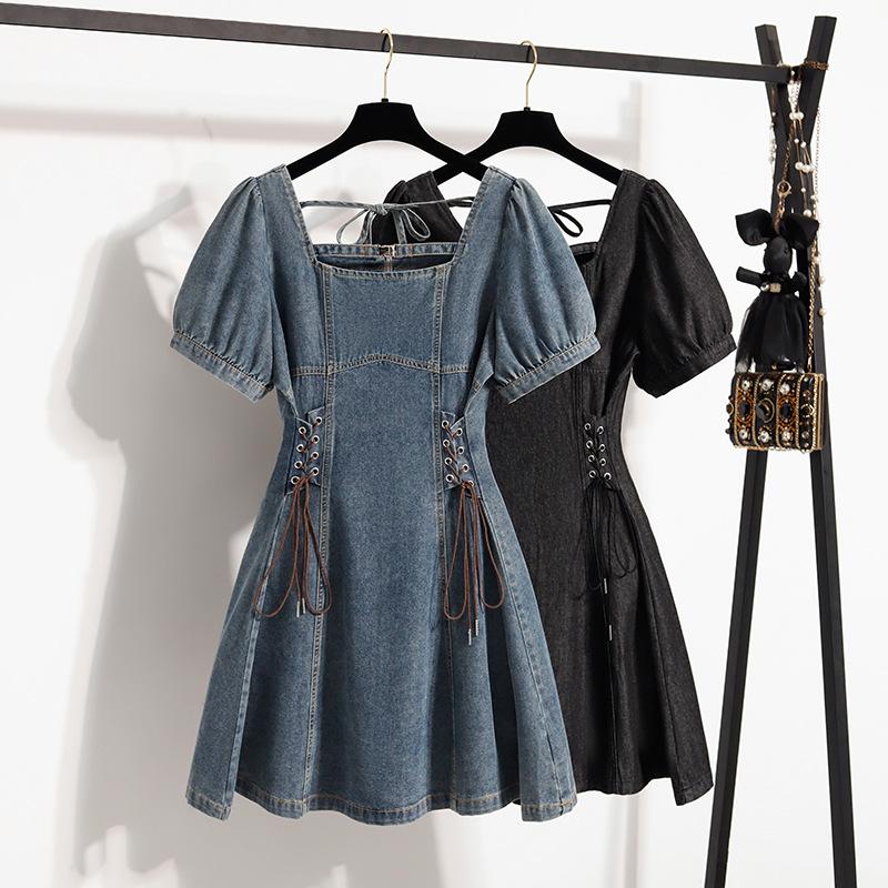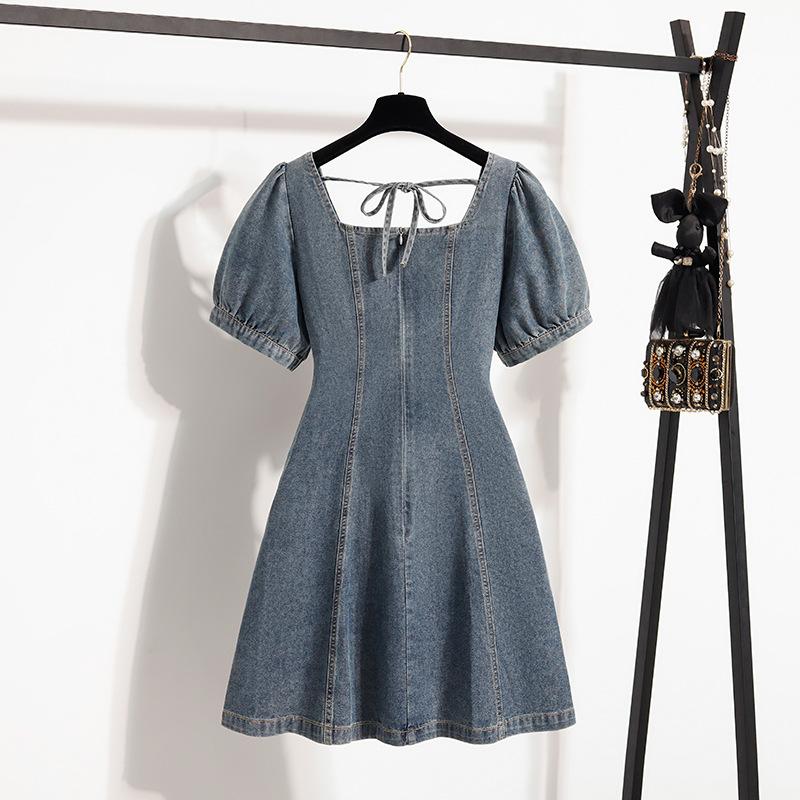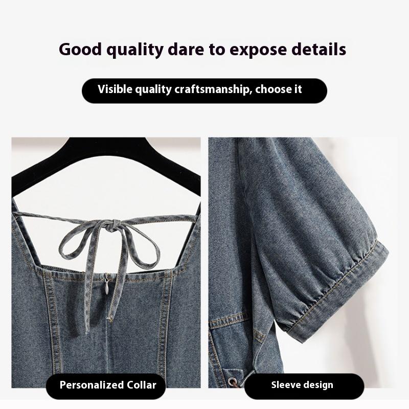 Летнее женское платье больших размеров, французский дизайн, джинсовое платье, скрывающее живот