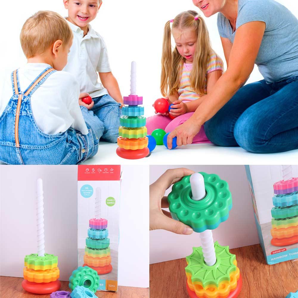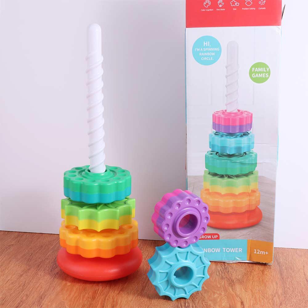 Монтессори Вращающаяся Радужная Башня Координация Рук и Глаз Складывание Радужной Башни Дом