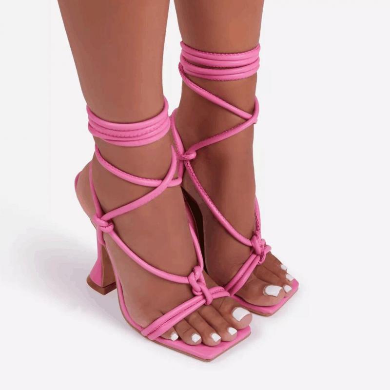 Женские сандалии, пикантные летние туфли-гладиаторы, туфли-лодочки на высоком каблуке с зажимом и пряжкой и ремешком, квадратный носок
