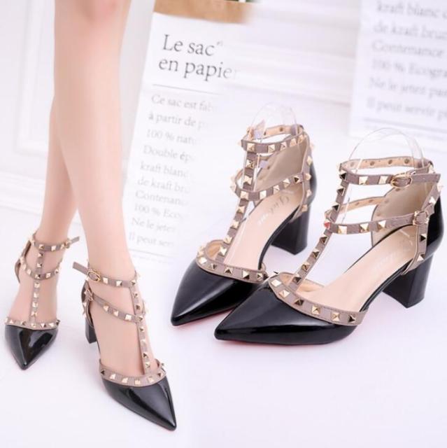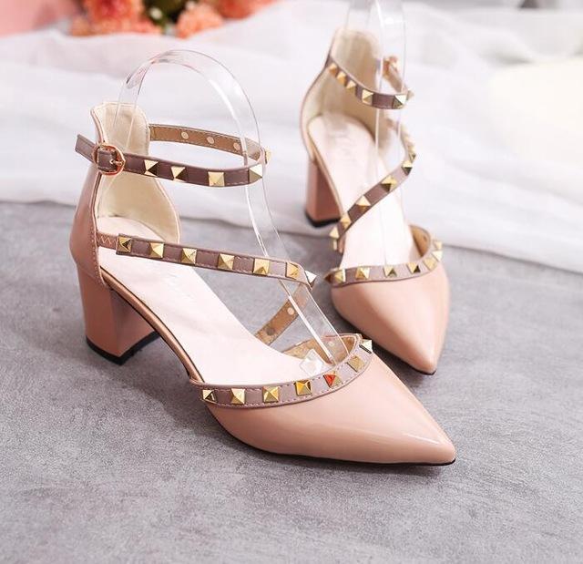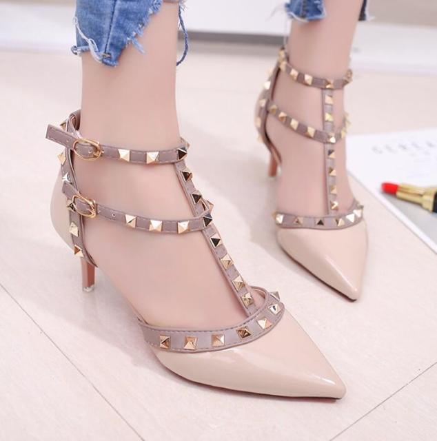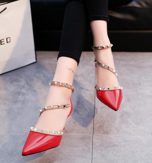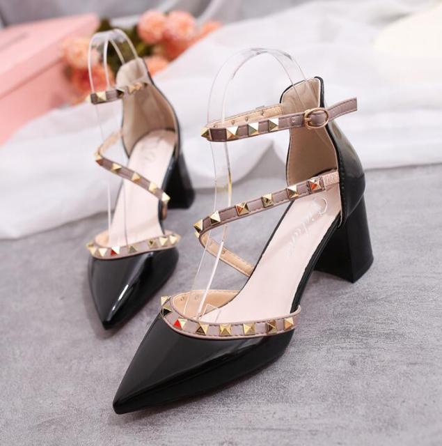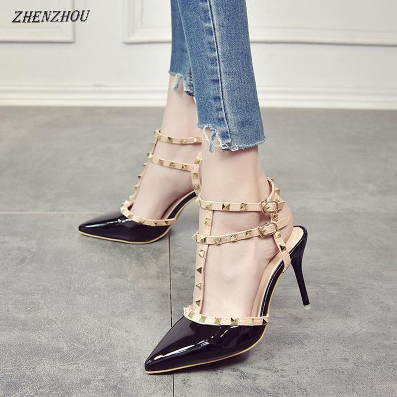 Женская обувь Сандалии с заклепками Женские летние туфли толщиной 6 см/10 см на тонком каблуке Туфли на высоком каблуке Пикантные туфли на шпильке с острым носком