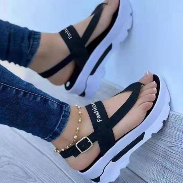 Женская обувь, летняя мода, открытый носок, платформа, танкетка, женская повседневная обувь, ремень с пряжкой, женские однотонные сандалии для отдыха на открытом воздухе