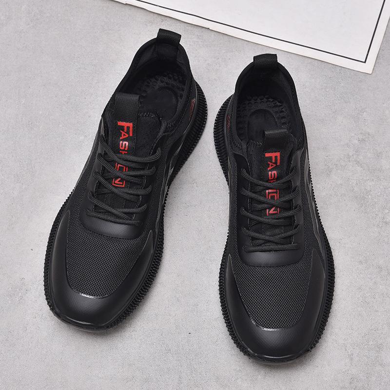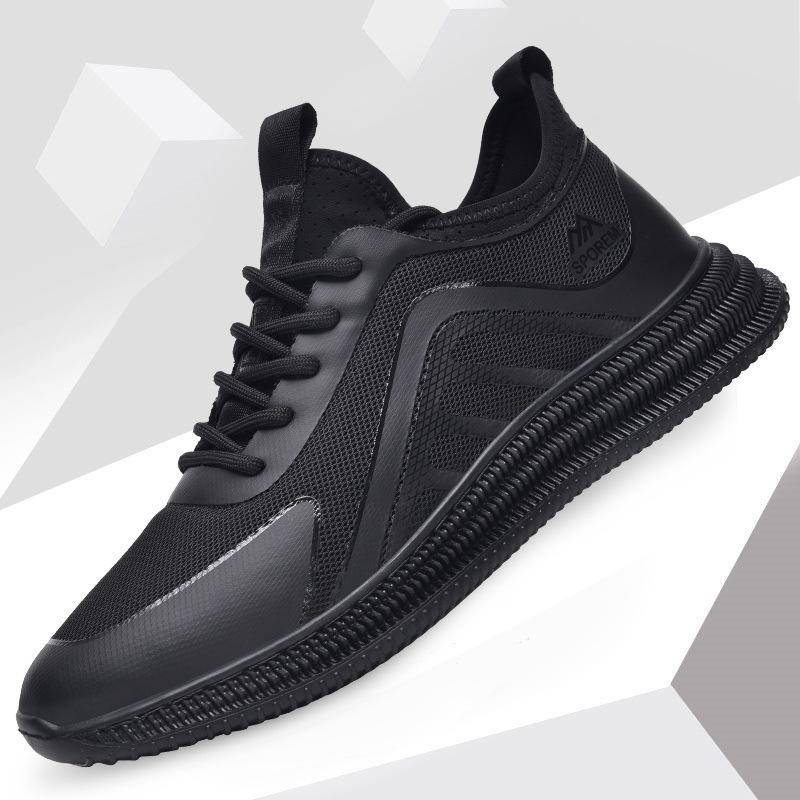 Весенние новые сетчатые дышащие легкие мужские туфли для подростков, простые черные атмосферные кроссовки на толстой подошве