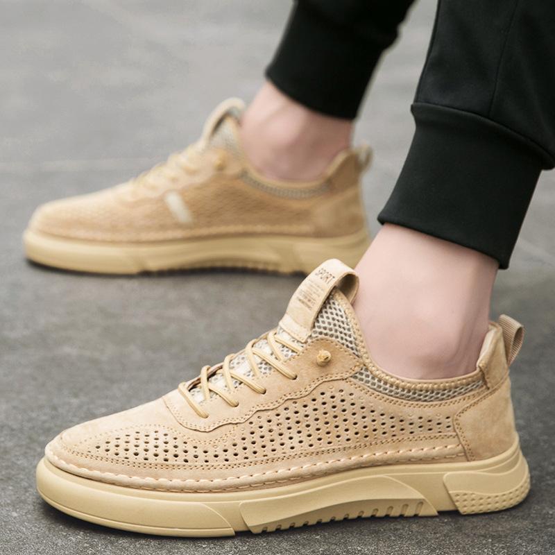 Новые летние легкие легкие дышащие туфли на мягкой подошве с сеткой, мужская обувь с сеткой, повседневная кожаная обувь, спортивная обувь